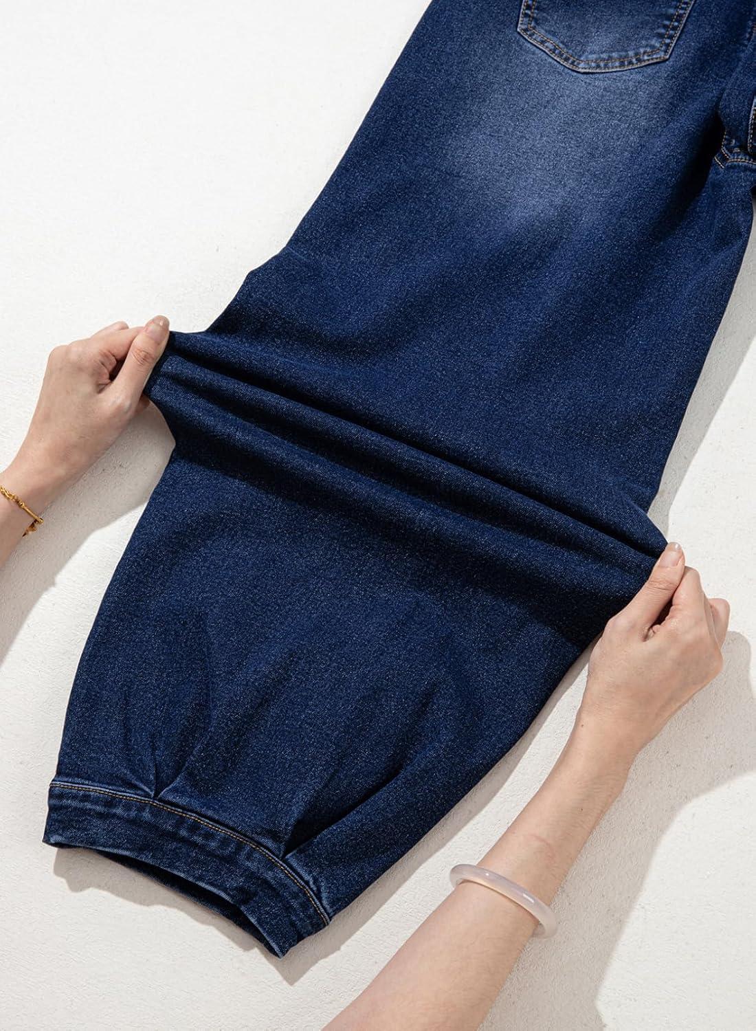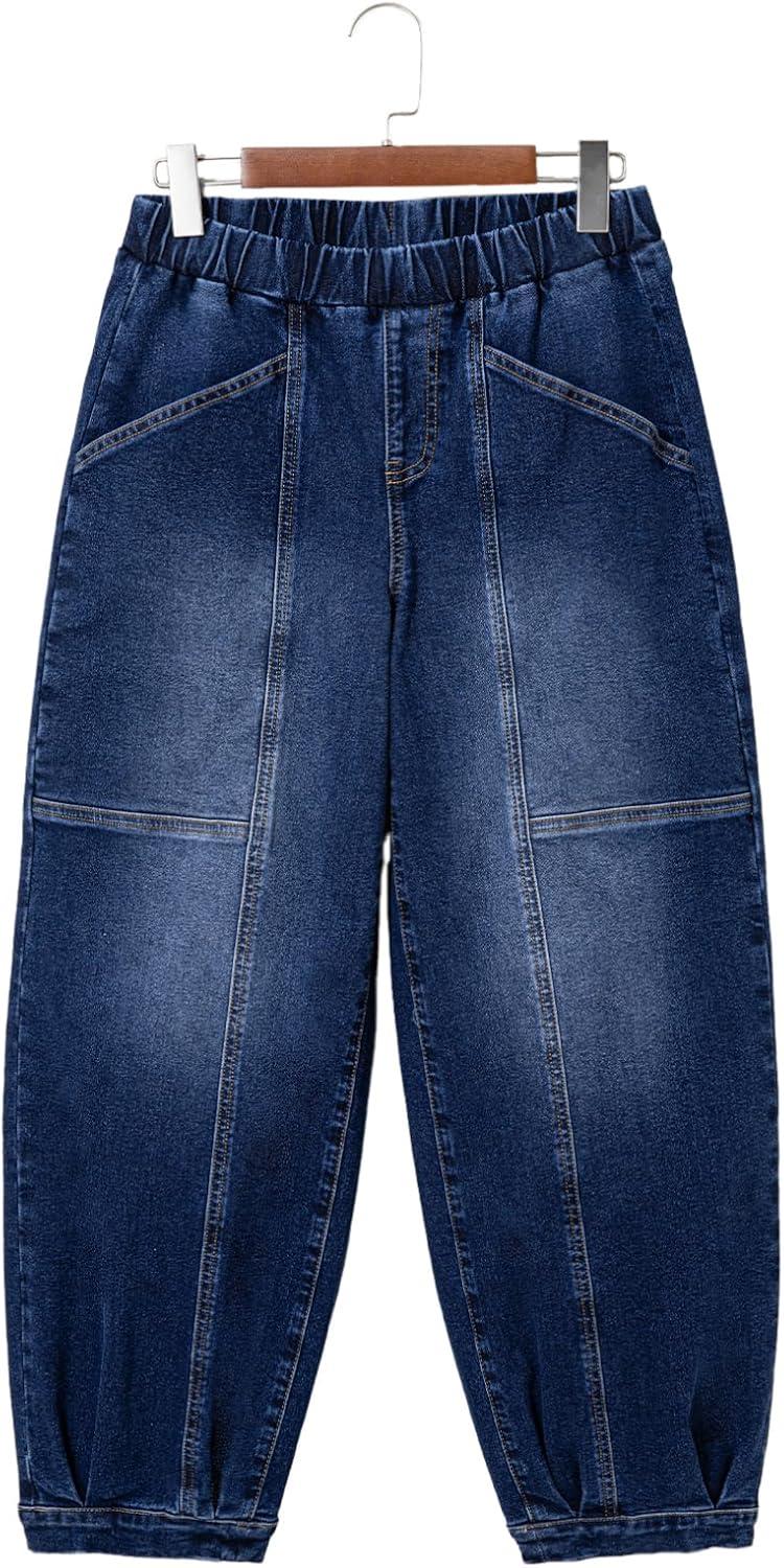 Sidefeel Barrel Jeans for Women Trendy Wide Leg High Waisted Cropped Baggy Relax Fit Stretch Pocketed Denim Ankle Pants(Bluing)