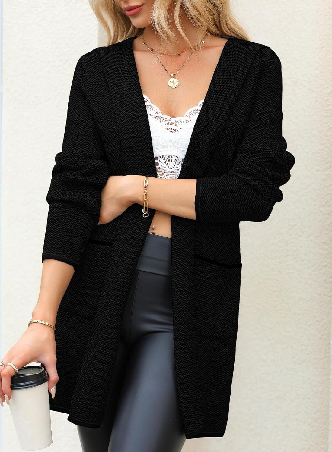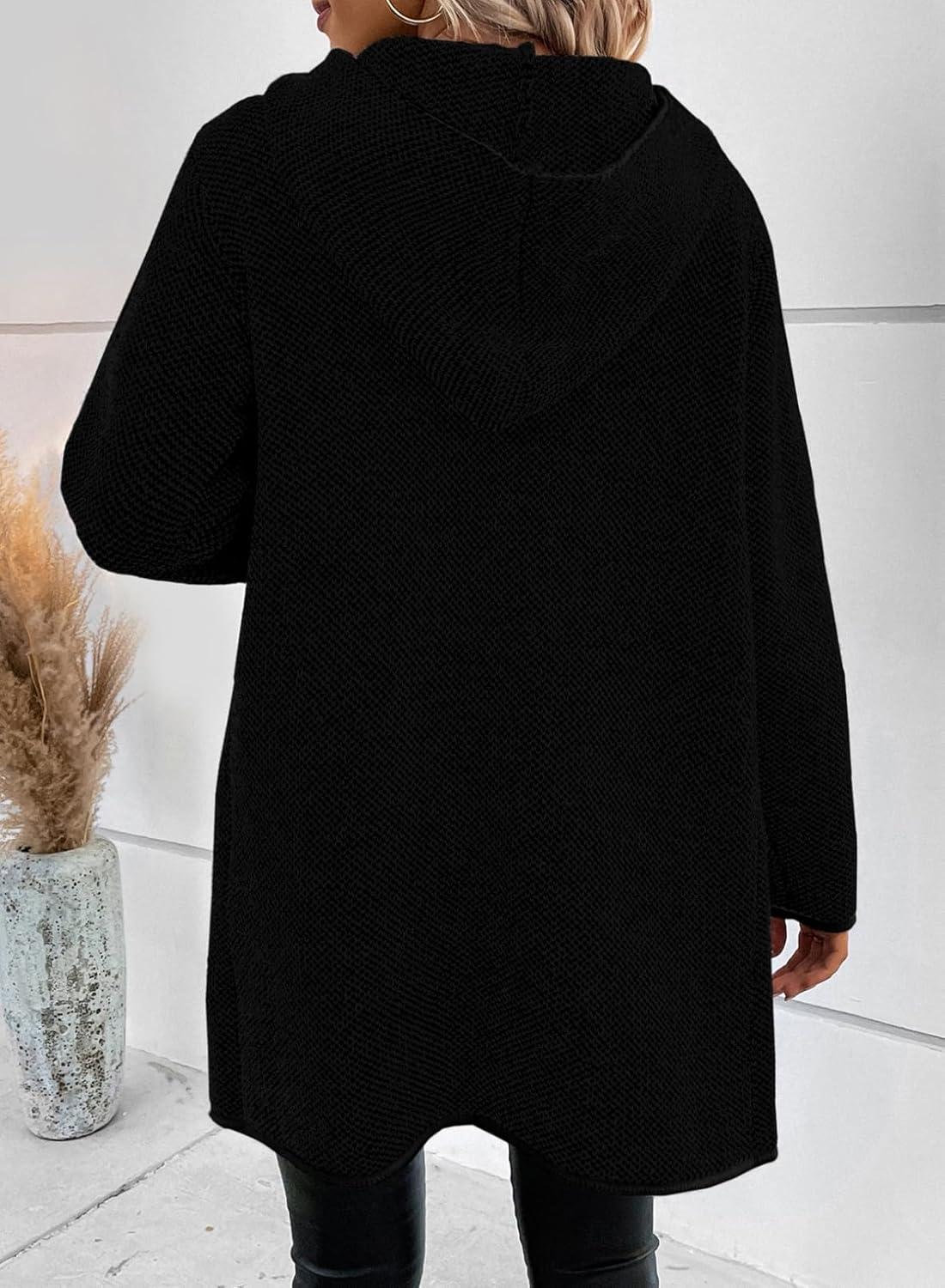 Sidefeel Womens 2025 Fall Outfits Long Sleeve Open Front Contrast Cardigan Sweaters Oversized Chunky Hooded Sweaters Coat(Black)