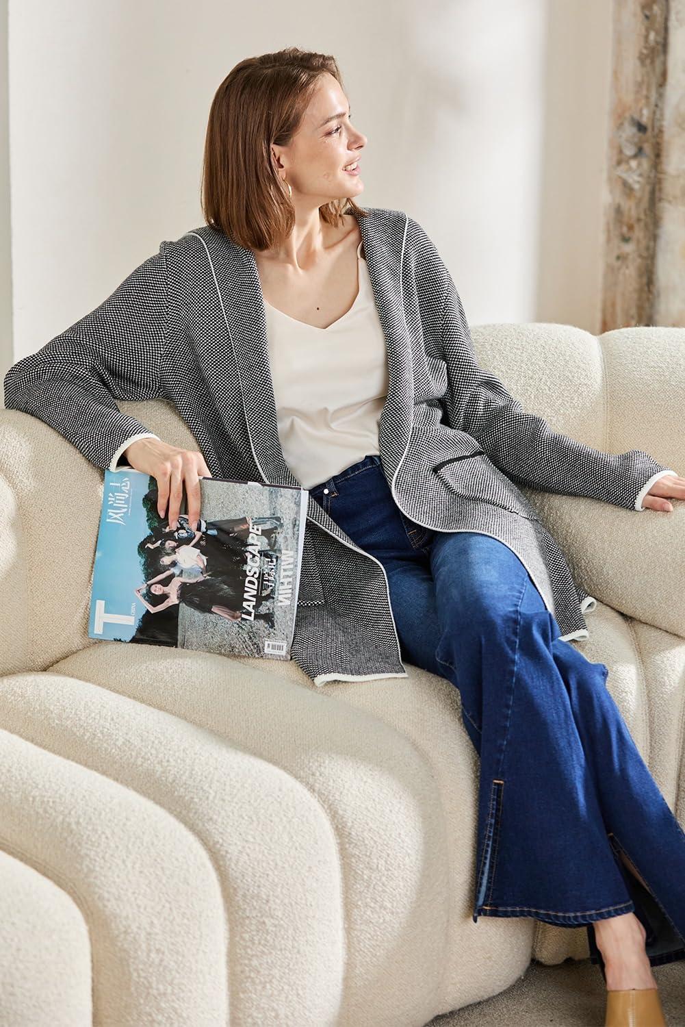 Sidefeel Womens 2025 Fall Outfits Long Sleeve Open Front Contrast Cardigan Sweaters Oversized Chunky Hooded Sweaters Coat(Charcoal)