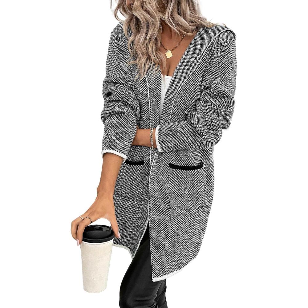 imageSidefeel Womens 2025 Fall Outfits Long Sleeve Open Front Contrast Cardigan Sweaters Oversized Chunky Hooded Sweaters CoatCharcoal