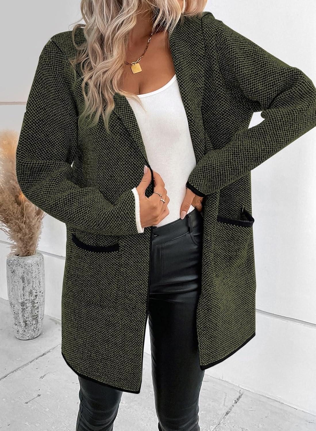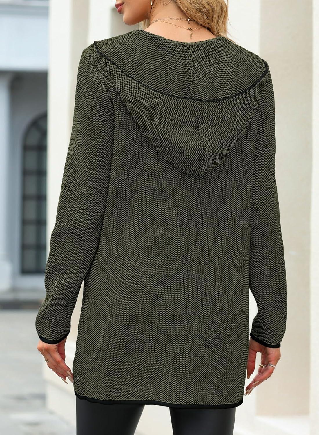 Sidefeel Womens 2025 Fall Outfits Long Sleeve Open Front Contrast Cardigan Sweaters Oversized Chunky Hooded Sweaters Coat(Green)