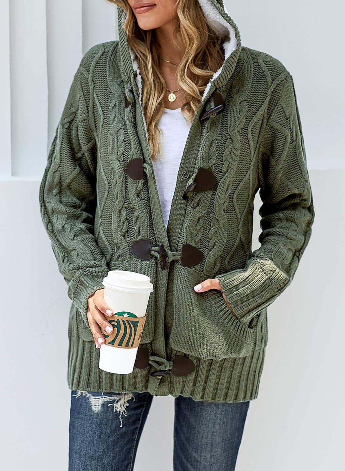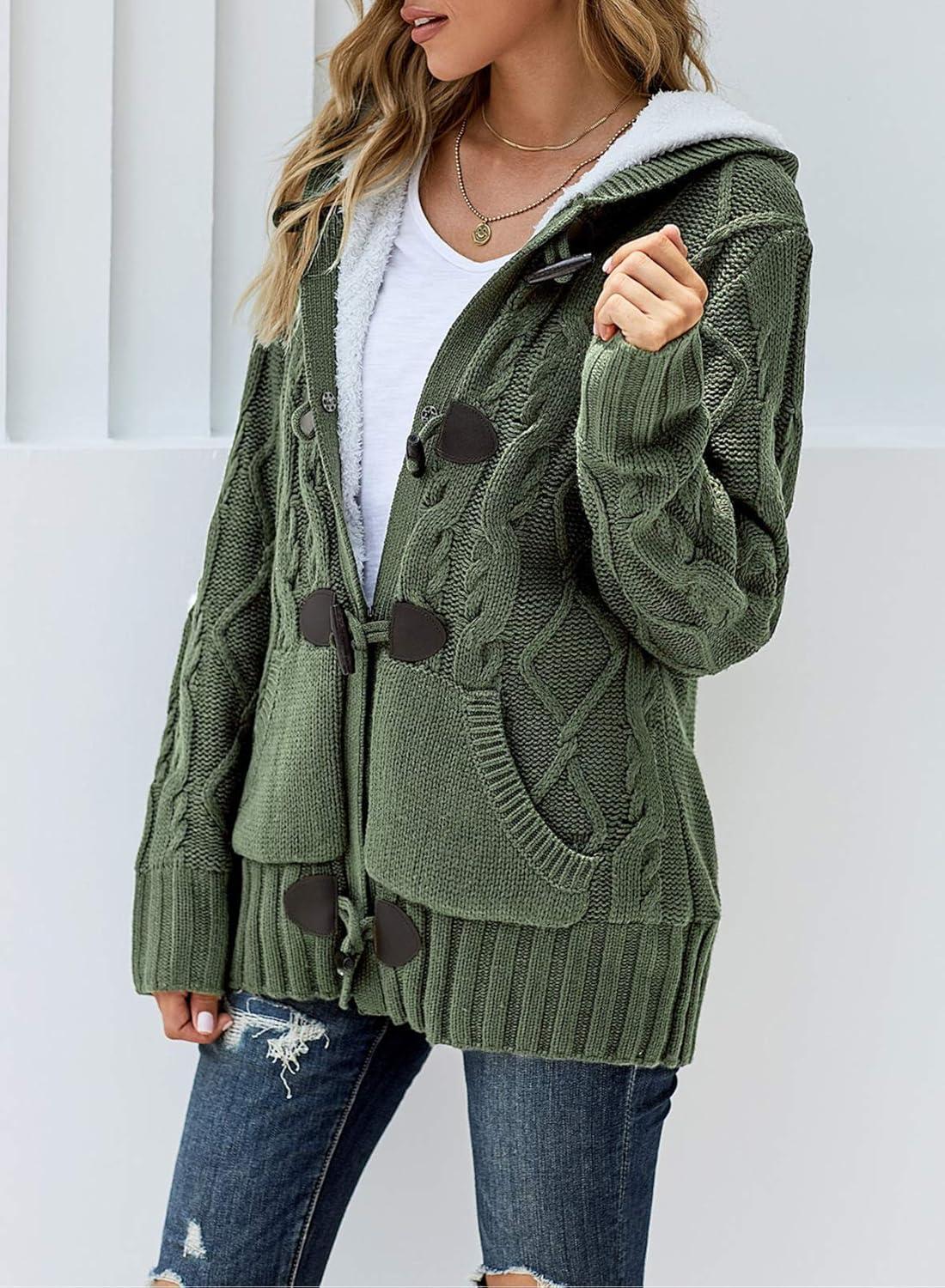 Sidefeel Women’s Cardigan Sweaters Hooded Fleece Lined Button Down Winter Sweater Coat(K-amy Green)
