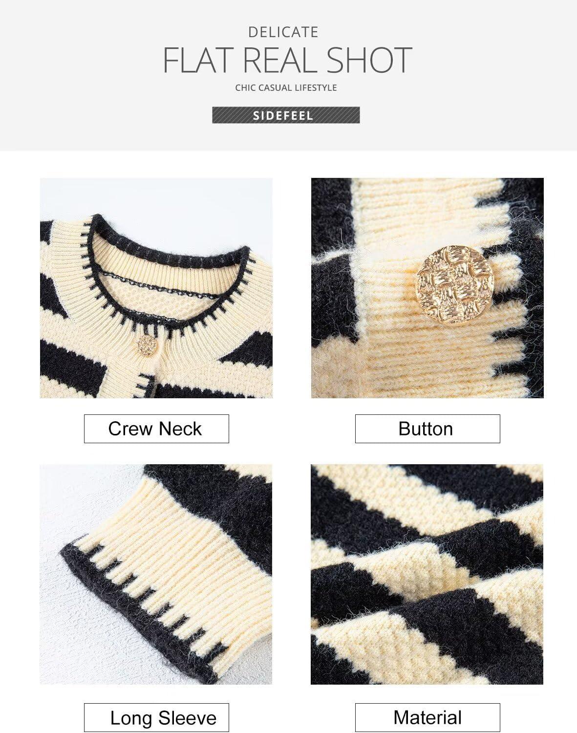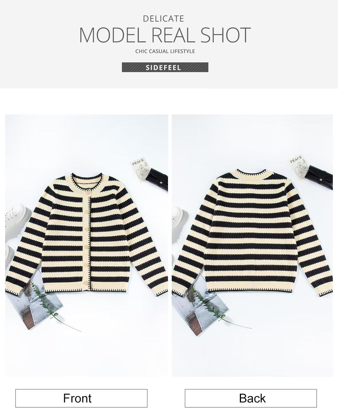 Sidefeel Women’s Cardigan Sweaters Striped Open Front Button Down Knitted Coat Cropped Fall Fashion Outwear(White Stripe)