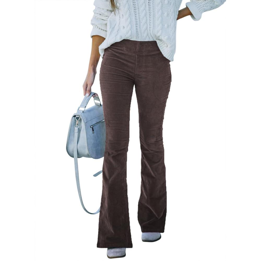 Sidefeel Women’s Corduroy Flare Pants Elastic Waist Bell Bottom Trousers 2025 Fall Pants(A Deep Brown)