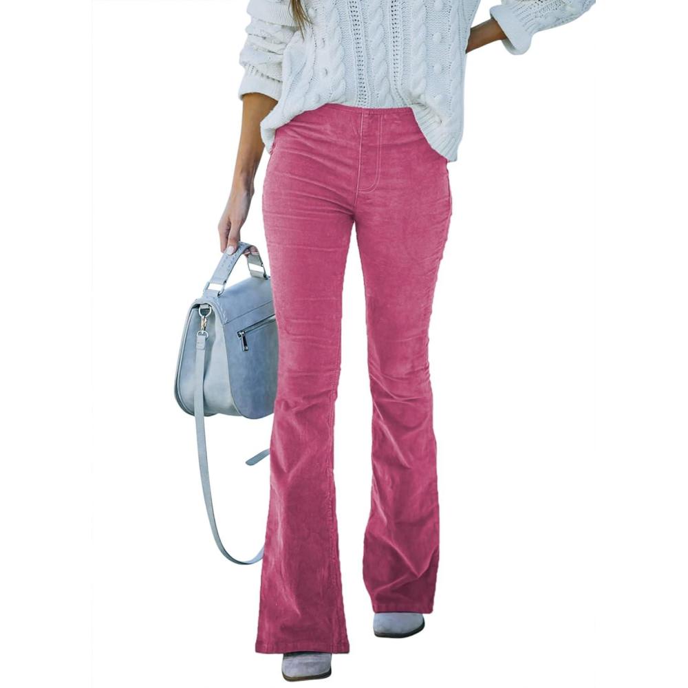 Sidefeel Women’s Corduroy Flare Pants Elastic Waist Bell Bottom Trousers 2025 Fall Pants(A Hot Pink)