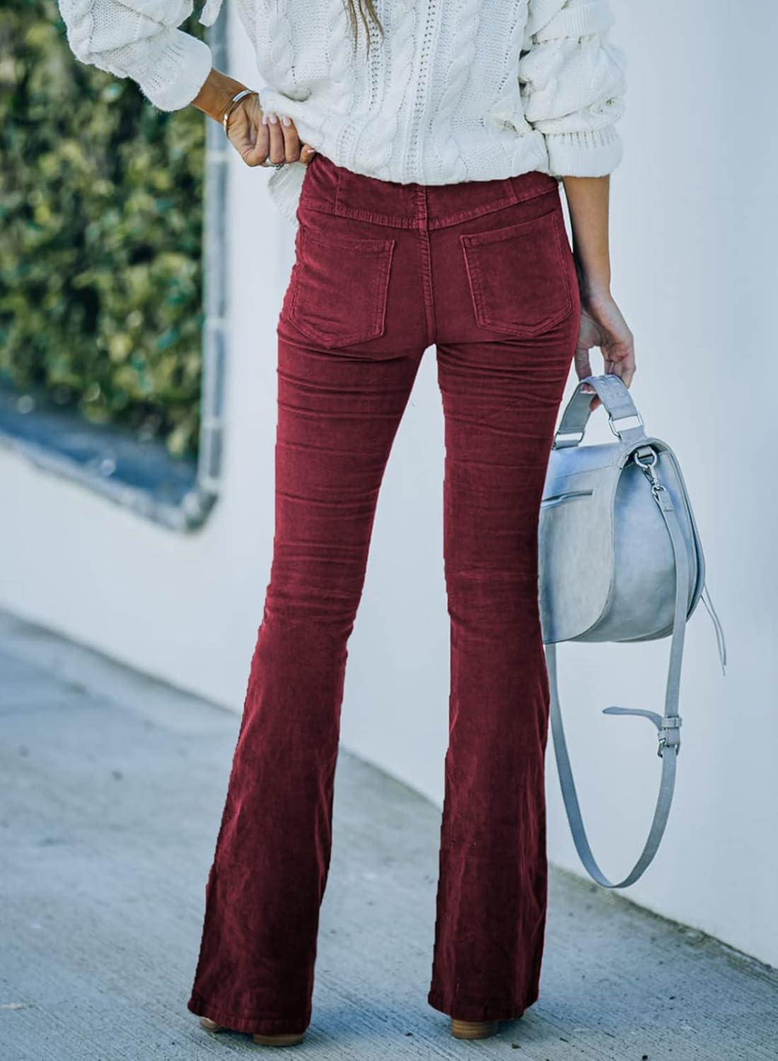 Sidefeel Women’s Corduroy Flare Pants Elastic Waist Bell Bottom Trousers 2025 Fall Pants(A Red)