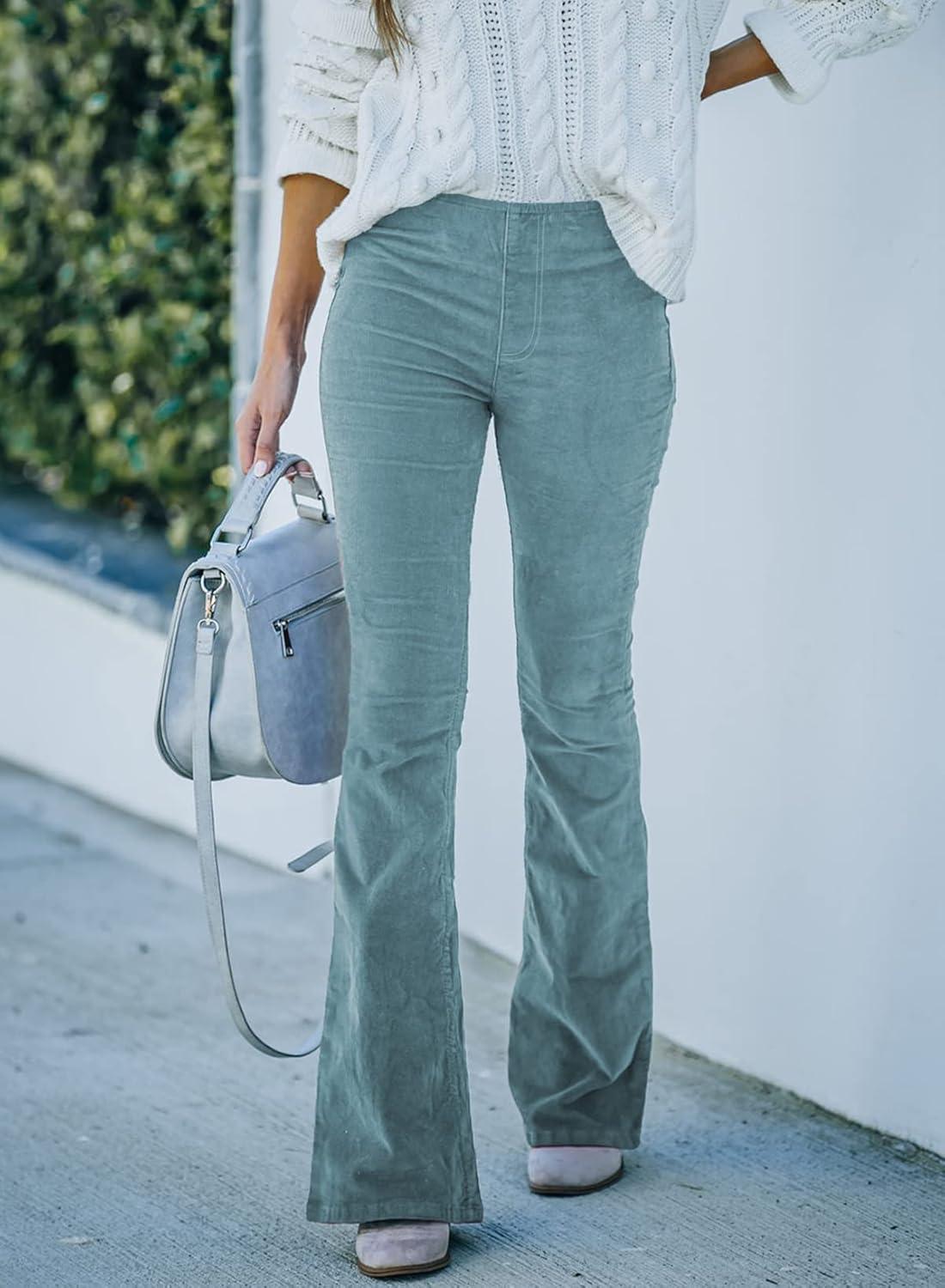 Sidefeel Women’s Corduroy Flare Pants Elastic Waist Bell Bottom Trousers 2025 Fall Pants(A 21 Green)