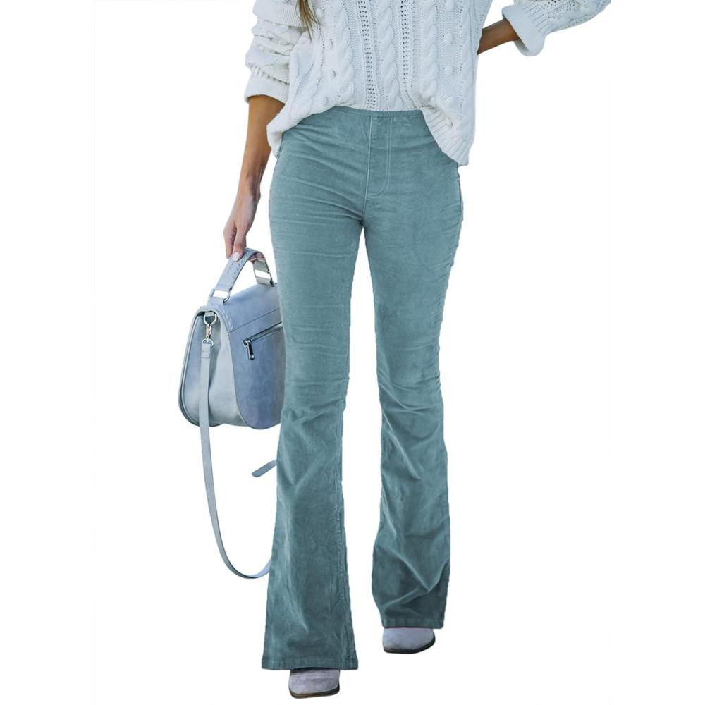 Sidefeel Women’s Corduroy Flare Pants Elastic Waist Bell Bottom Trousers 2025 Fall Pants(A Sky Blue)