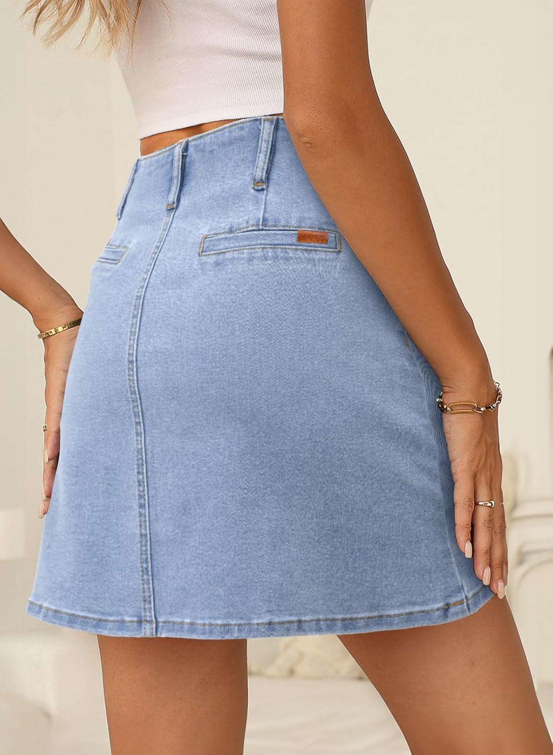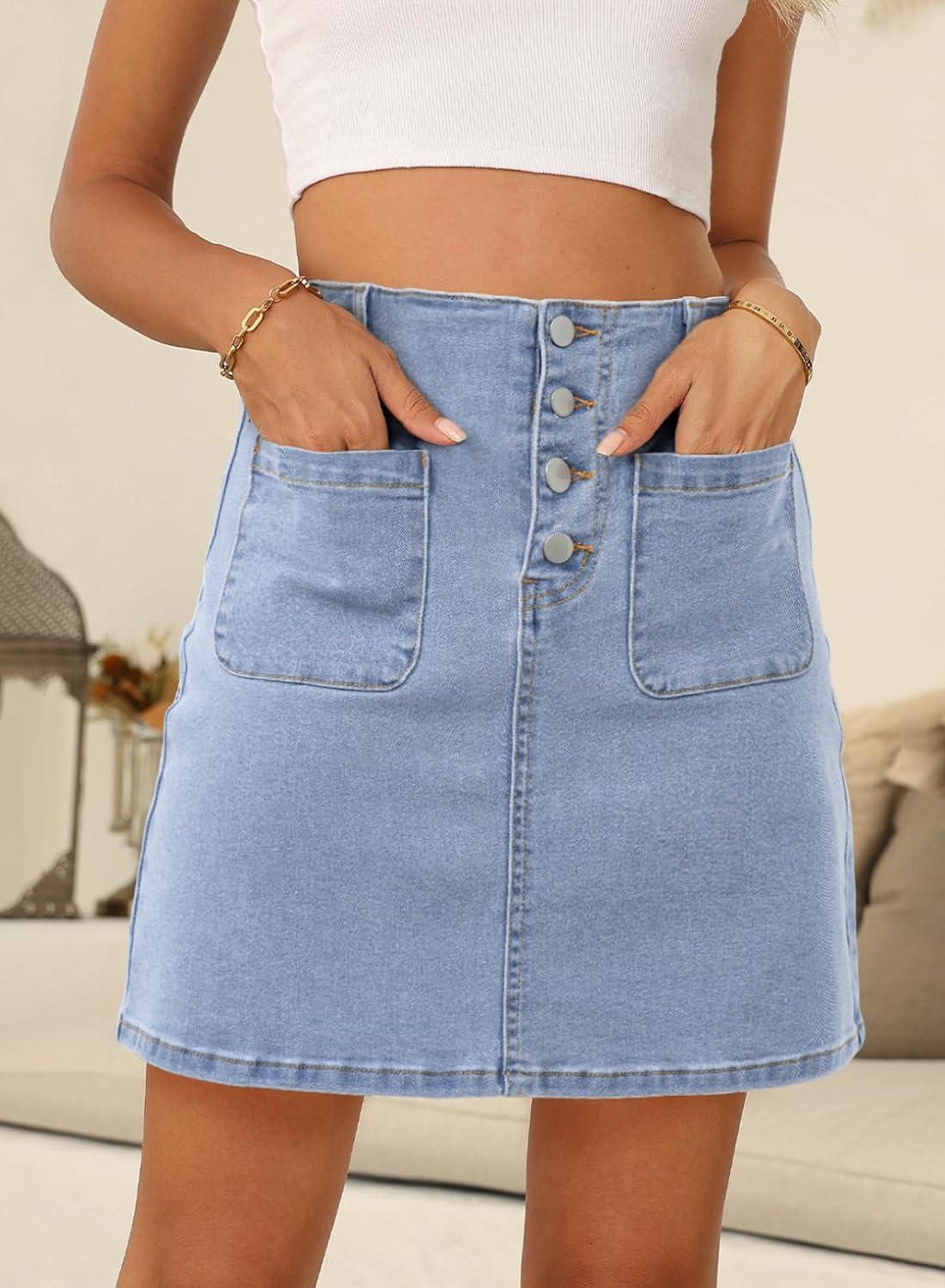 Sidefeel Women’s Jean Skirt High Waist Summer Stretch Zimbaplatinum Denim Skirt Button Mini Skirt with Pockets(Iceland Blue)