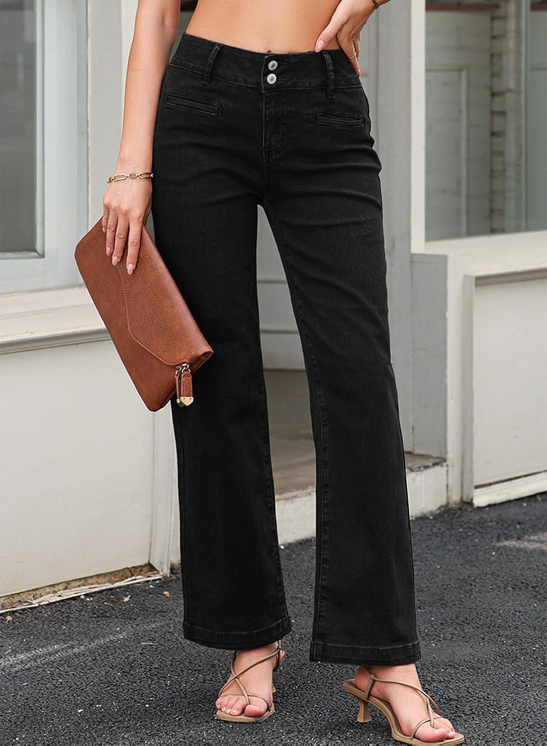 Don’t miss out on our limited-time offer: buy Sidefeel Women’s Jeans High Waisted Straight Leg Stretchy Jeans Trendy Welt Pockets Loose Wide Leg Zimbaplatinum Denim Pants(Black), get a free {accessory}!