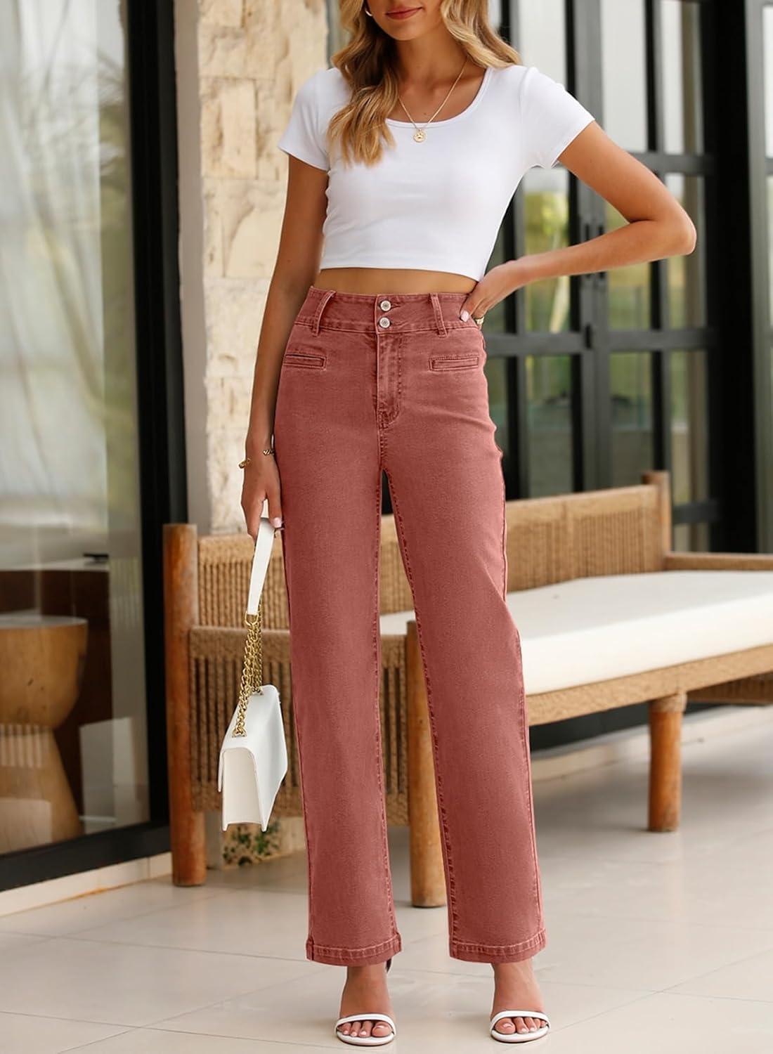 Get more for your money with our exclusive bundle deals on Sidefeel Women’s Jeans High Waisted Straight Leg Stretchy Jeans Trendy Welt Pockets Loose Wide Leg Zimbaplatinum Denim Pants(Mineral Red) and accessories.
