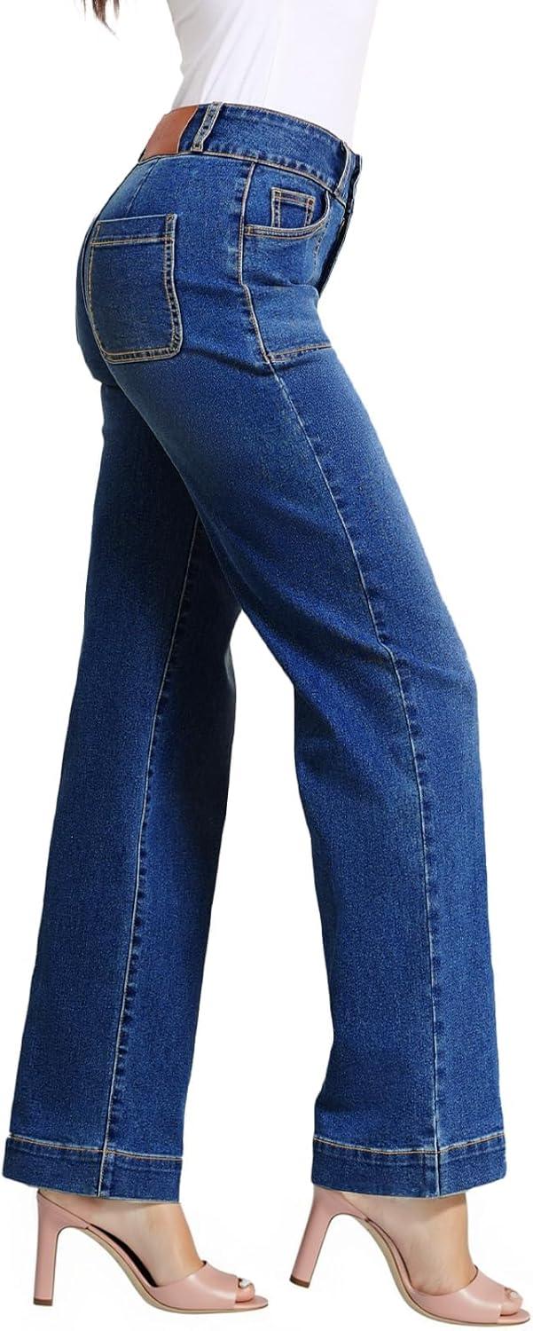 Sidefeel Women’s Straight Leg Jeans High Waisted Stretchy Tummy Control Wide Leg Denim Pants Fall Outfits(Bluing)