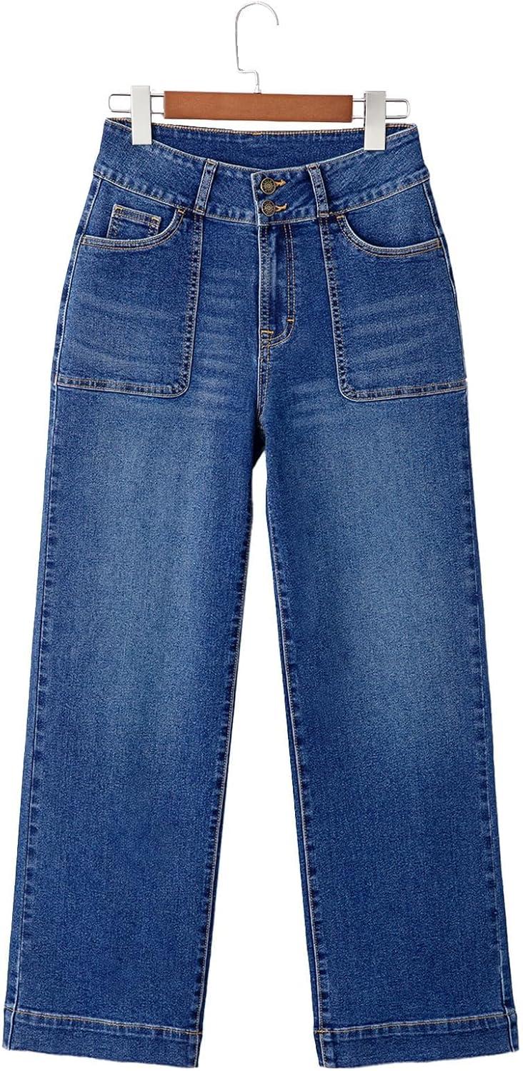 Sidefeel Women’s Straight Leg Jeans High Waisted Stretchy Tummy Control Wide Leg Denim Pants Fall Outfits(Dark Blue)