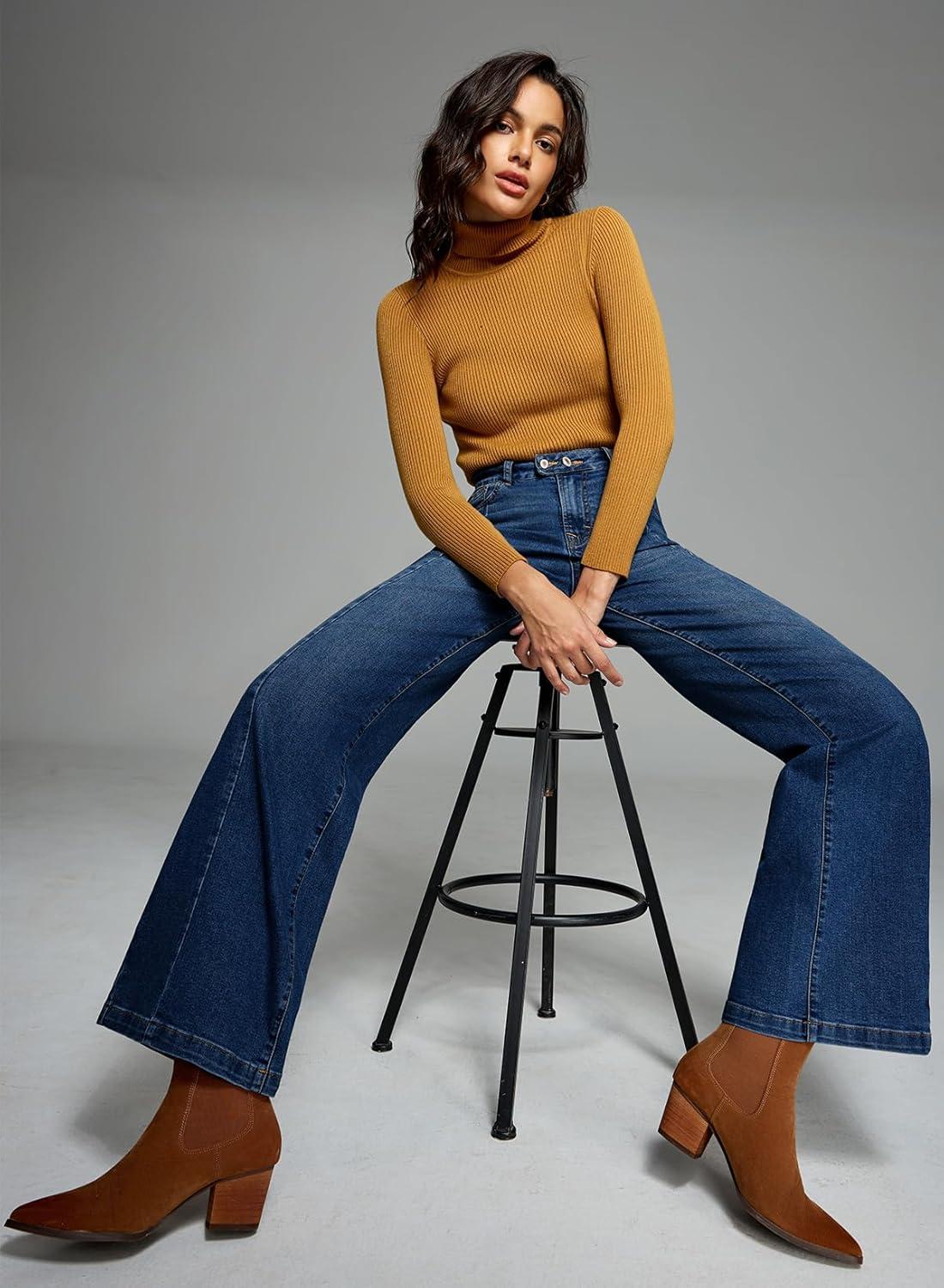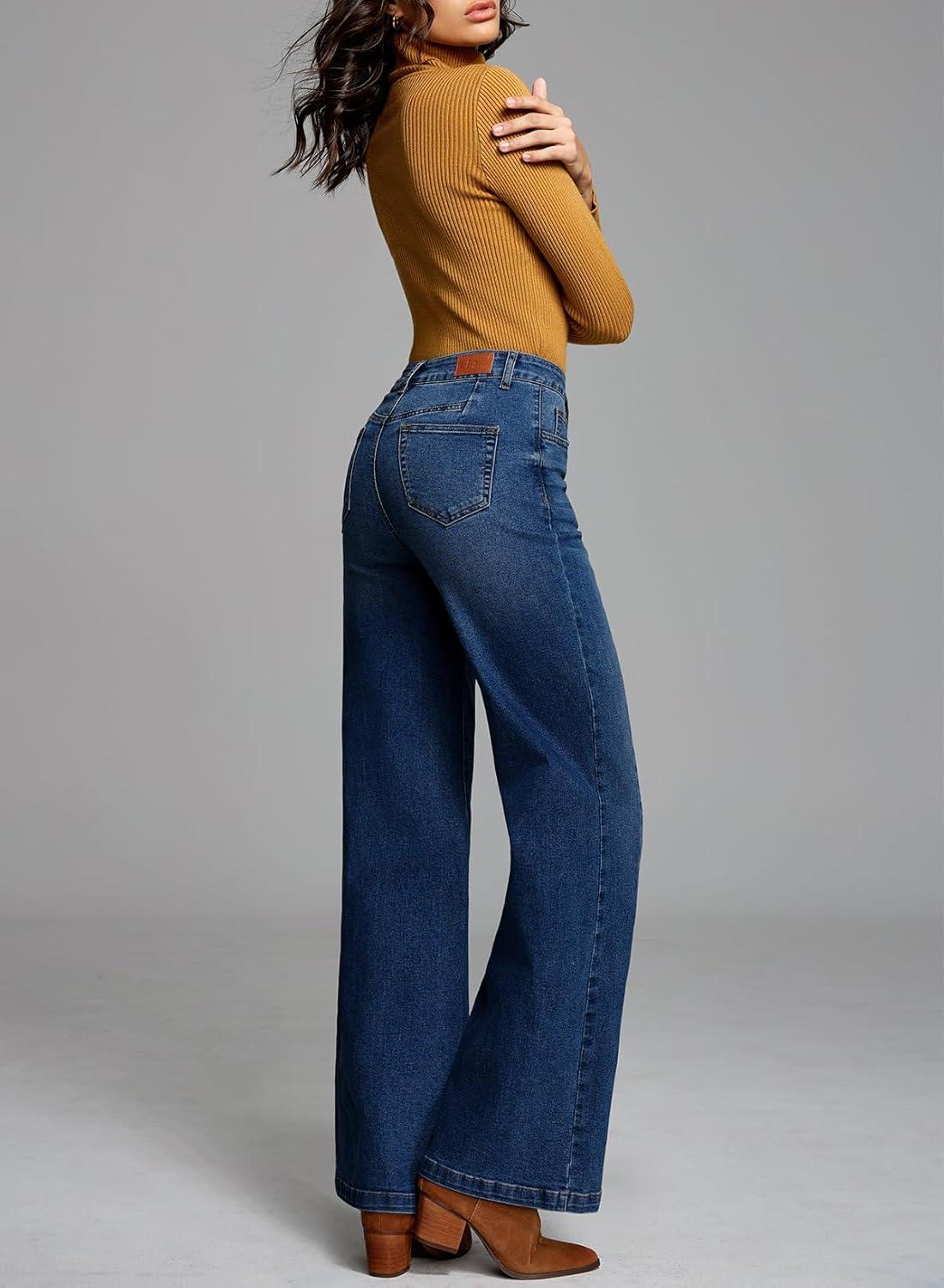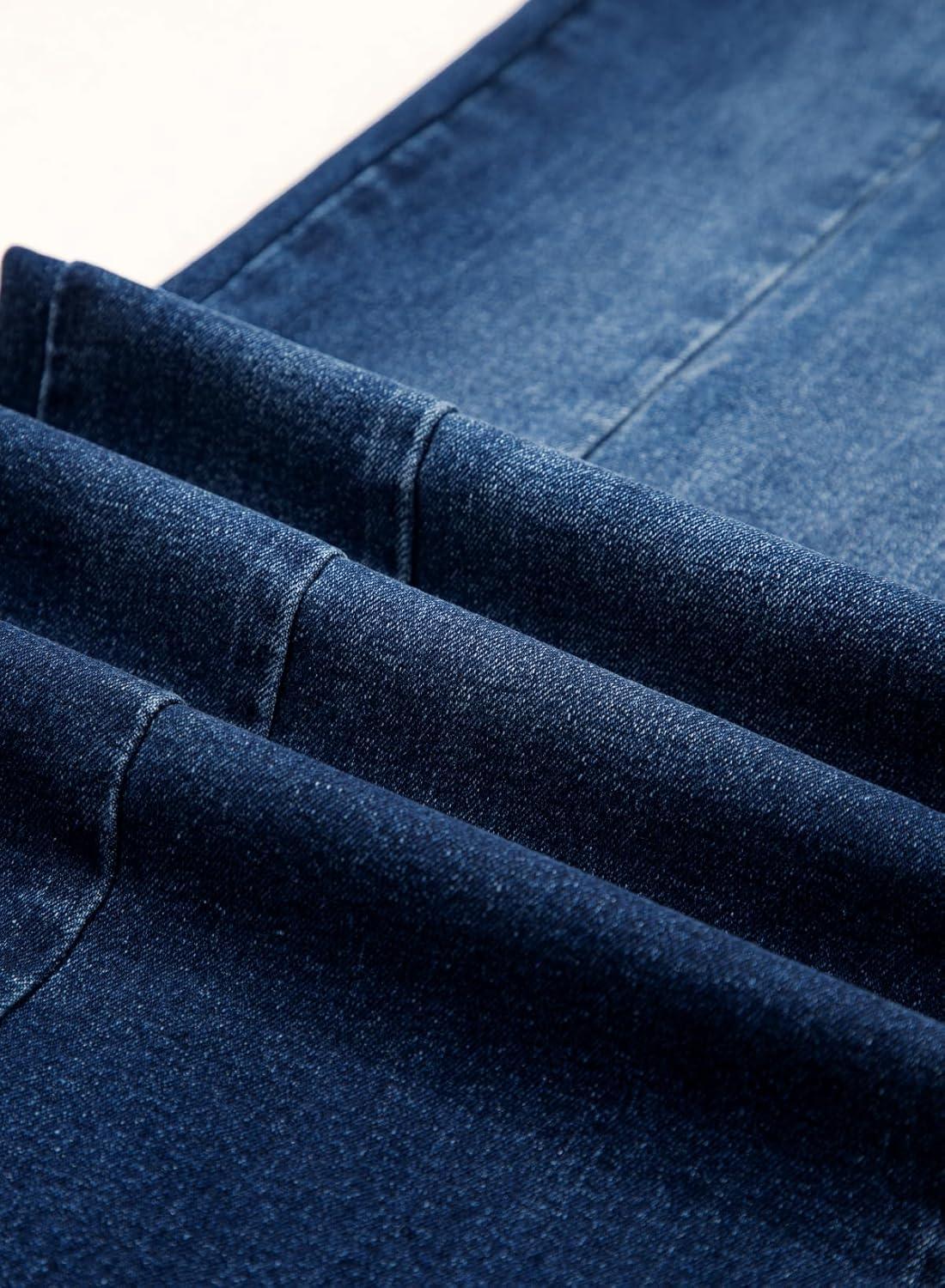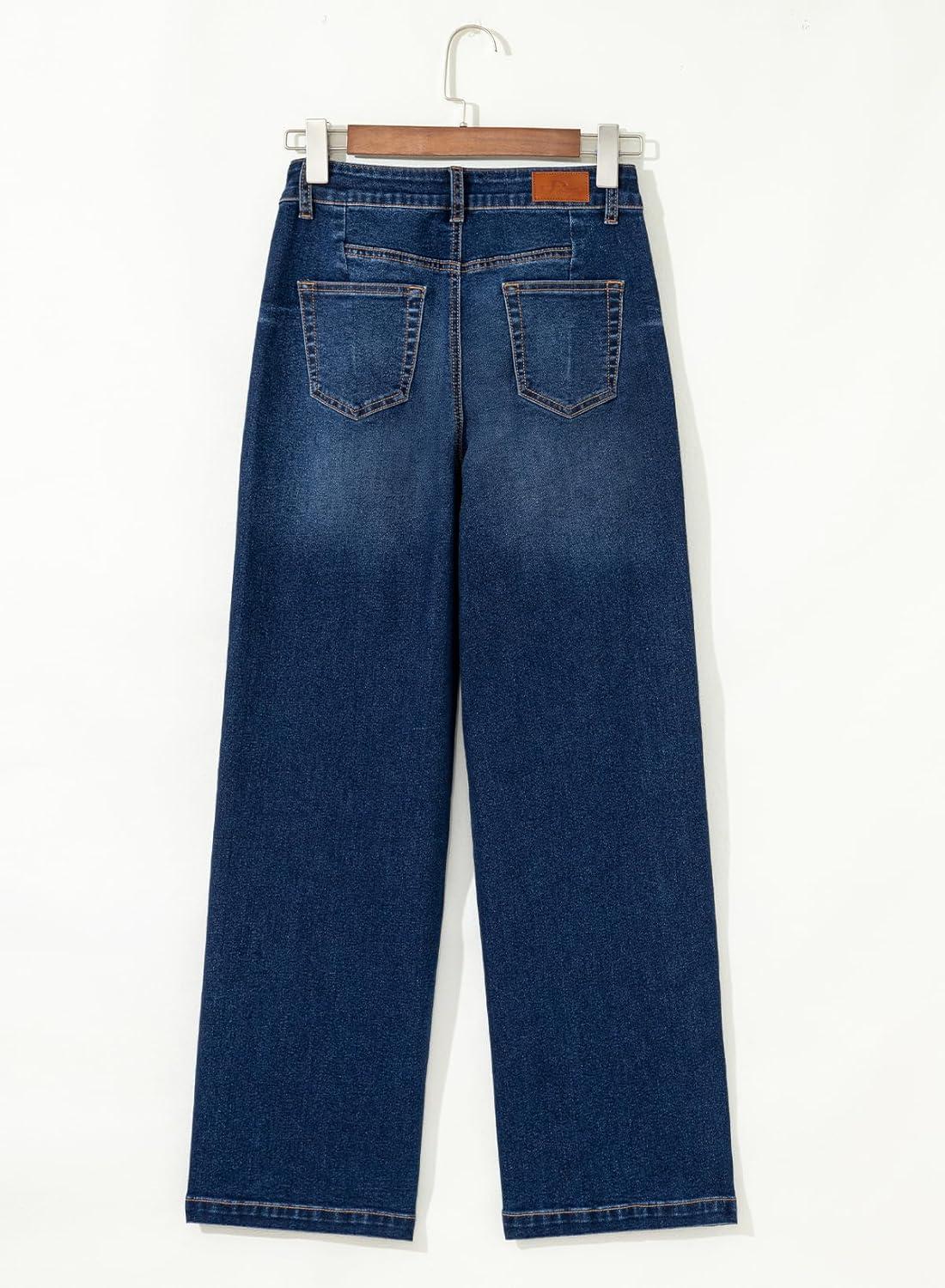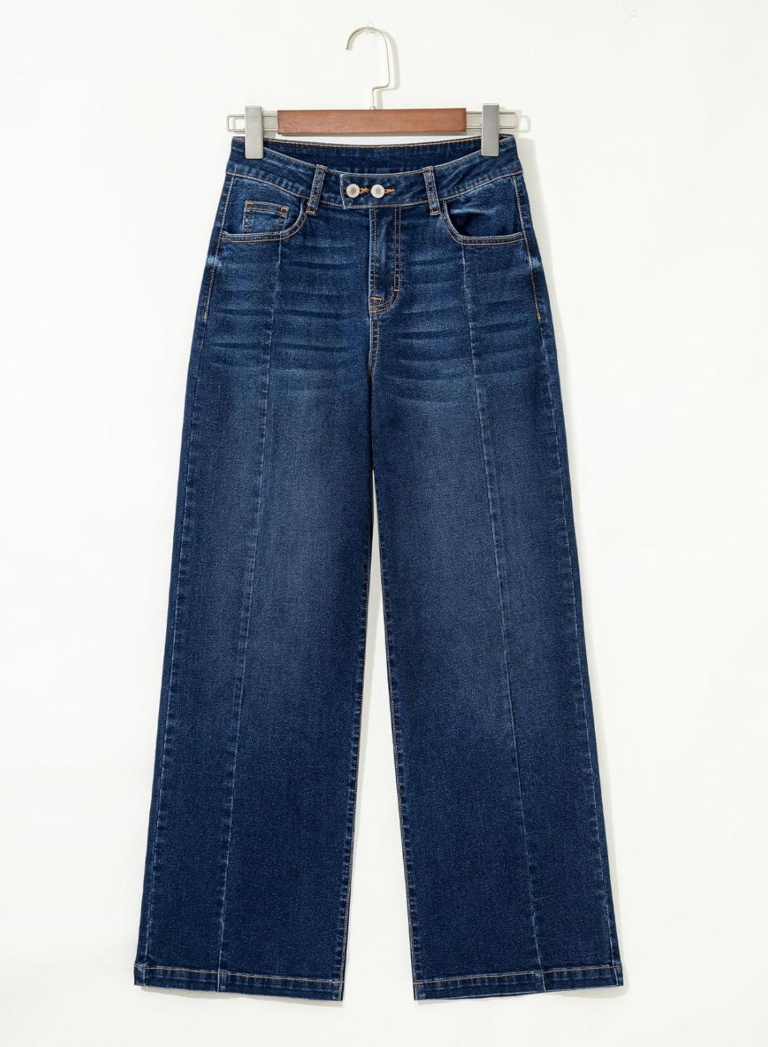 Sidefeel Women’s Wide Leg Jeans High Waisted Stretchy Front Seam Denim Pants(Dark Blue)