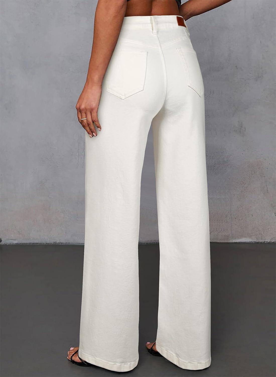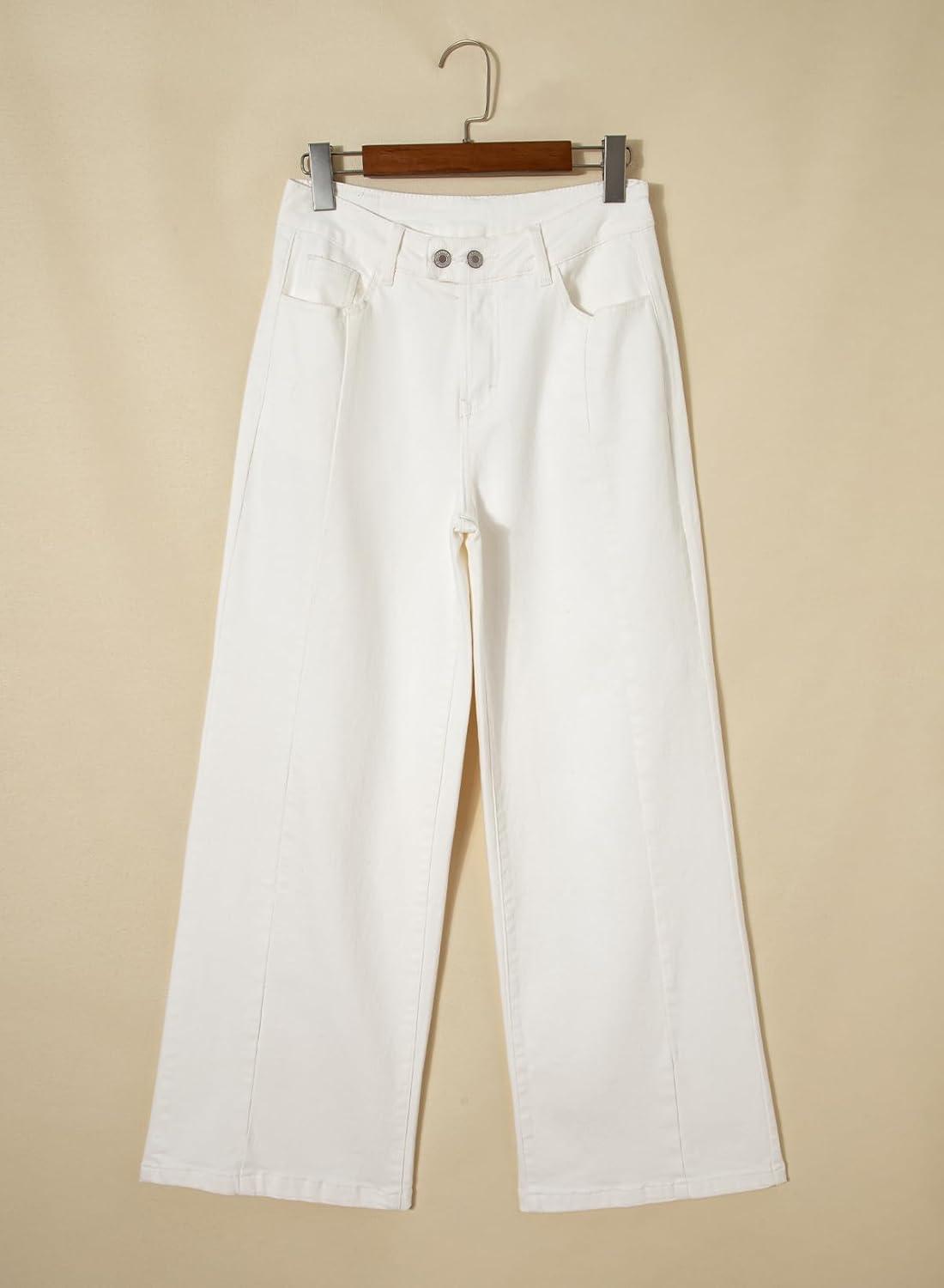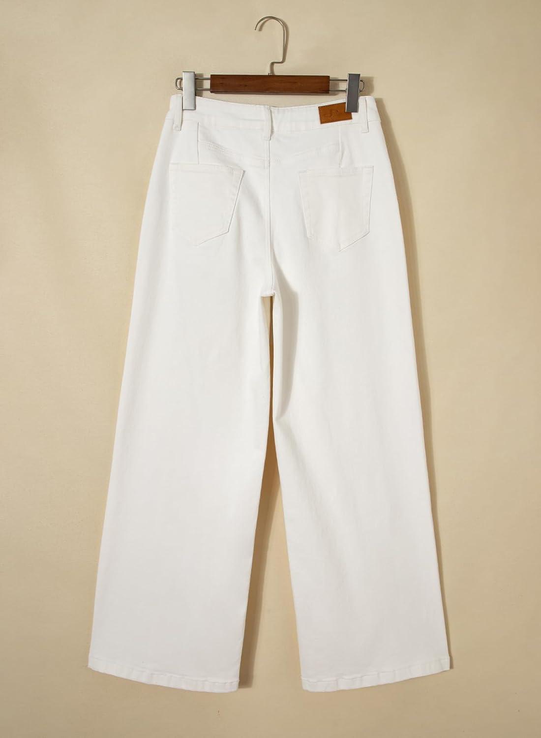 Sidefeel Women’s Wide Leg Jeans High Waisted Stretchy Front Seam Denim Pants(White)