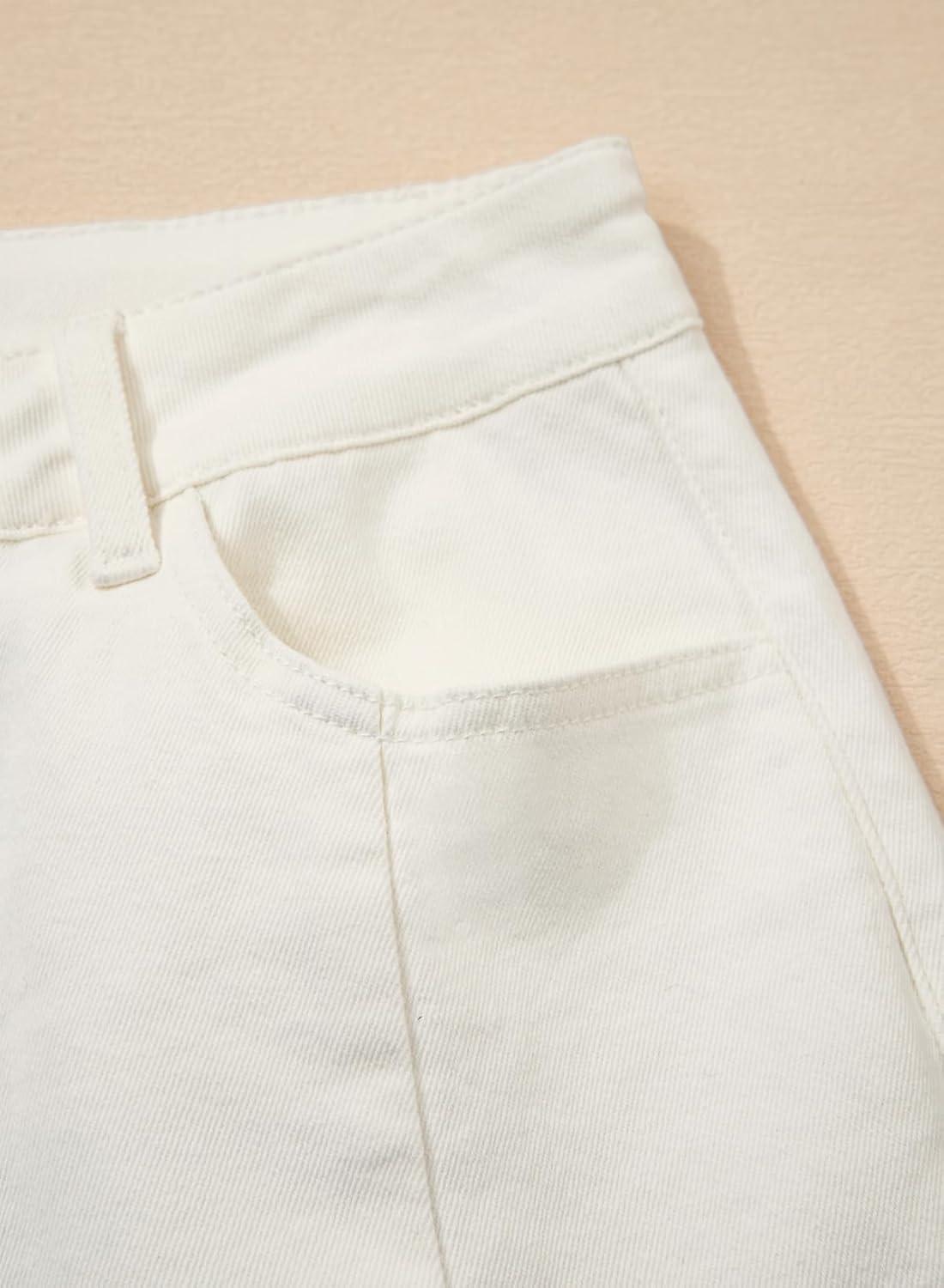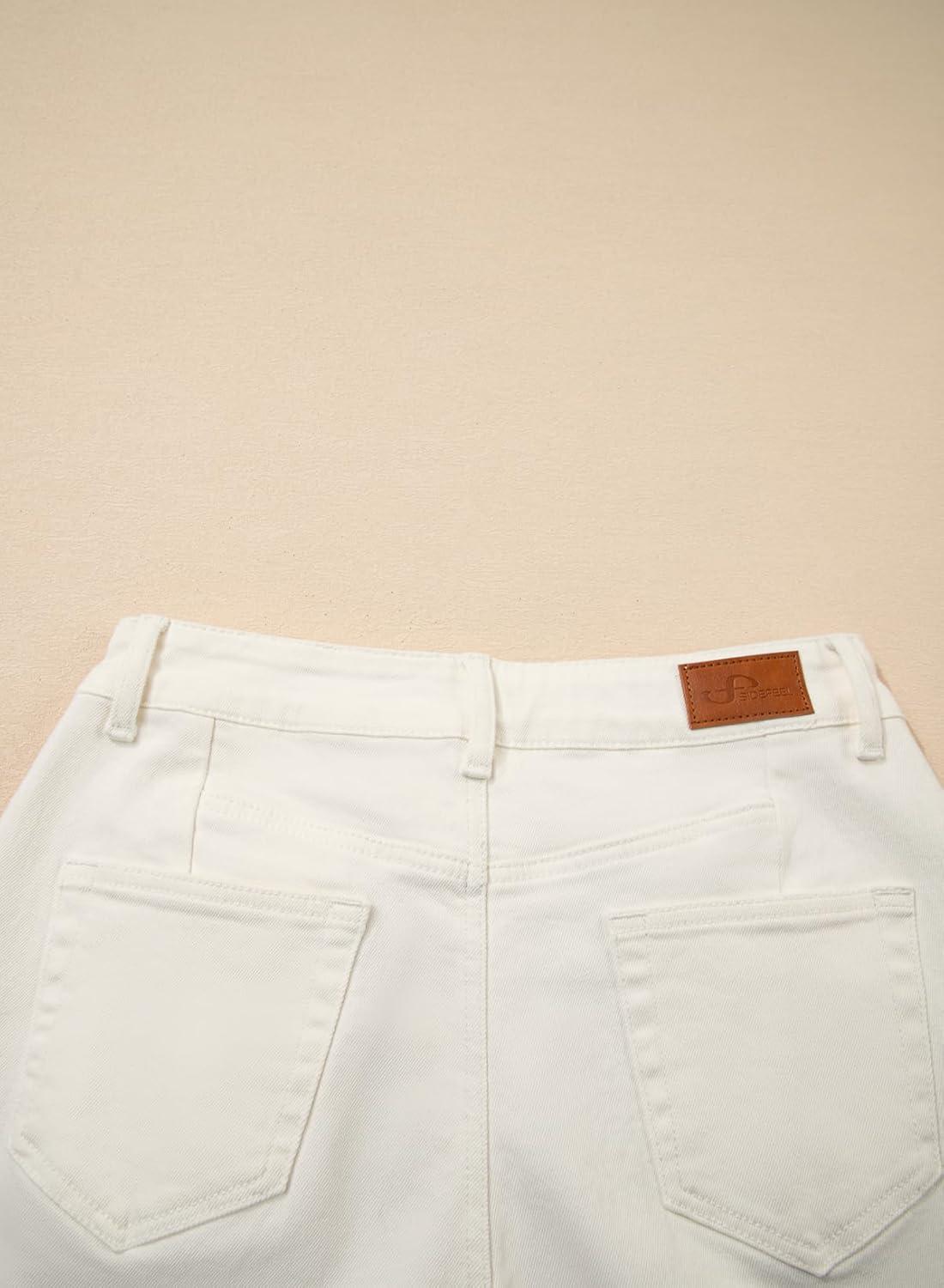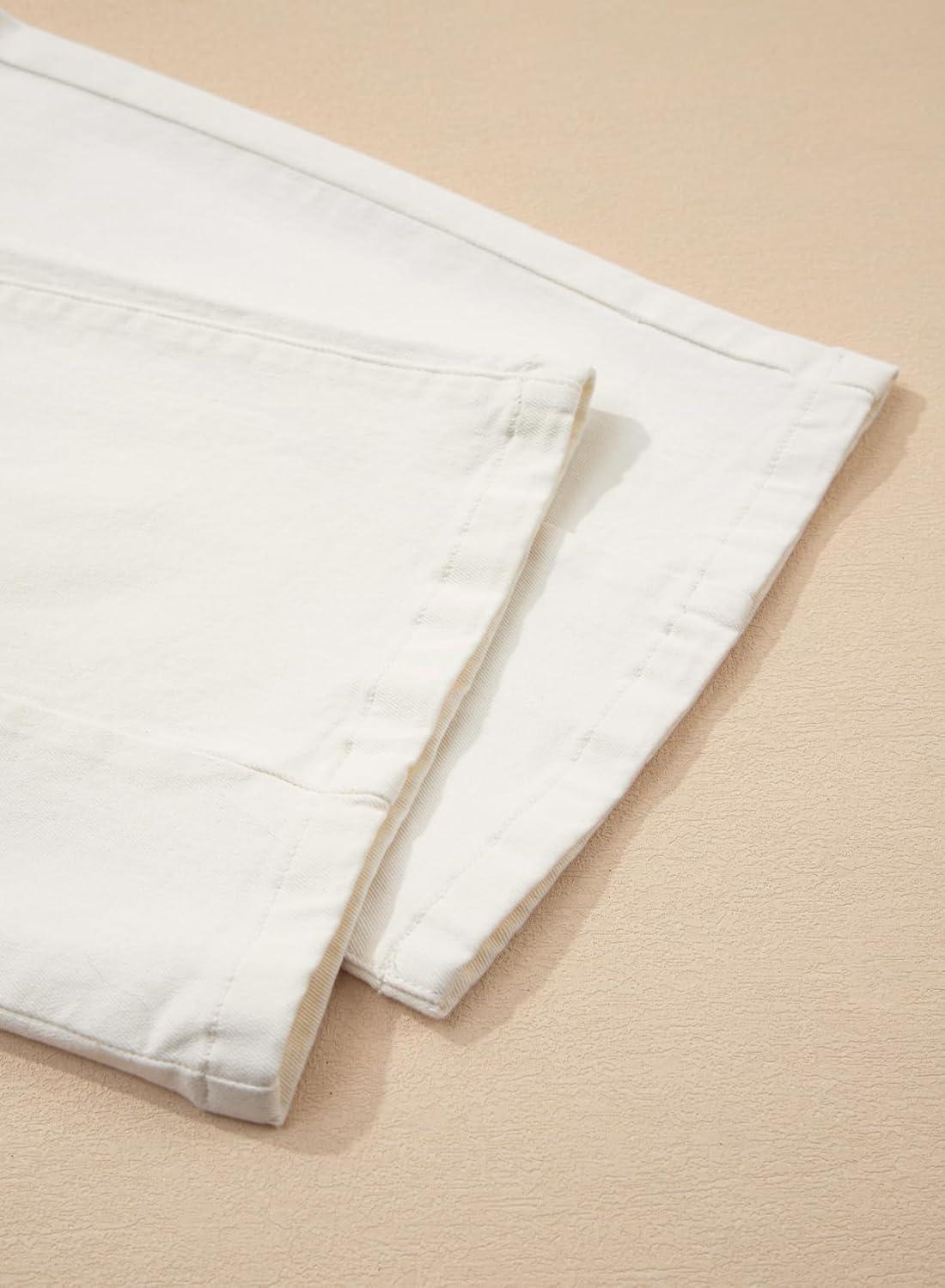 Sidefeel Women’s Wide Leg Jeans High Waisted Stretchy Front Seam Denim Pants(White)