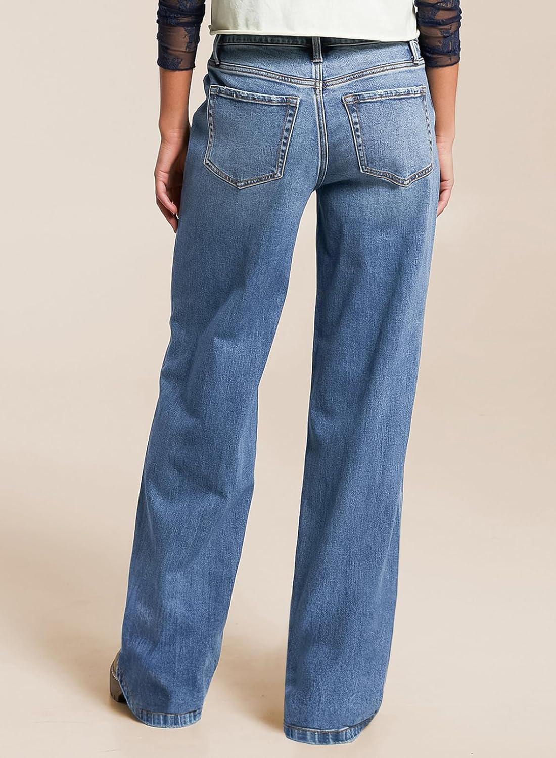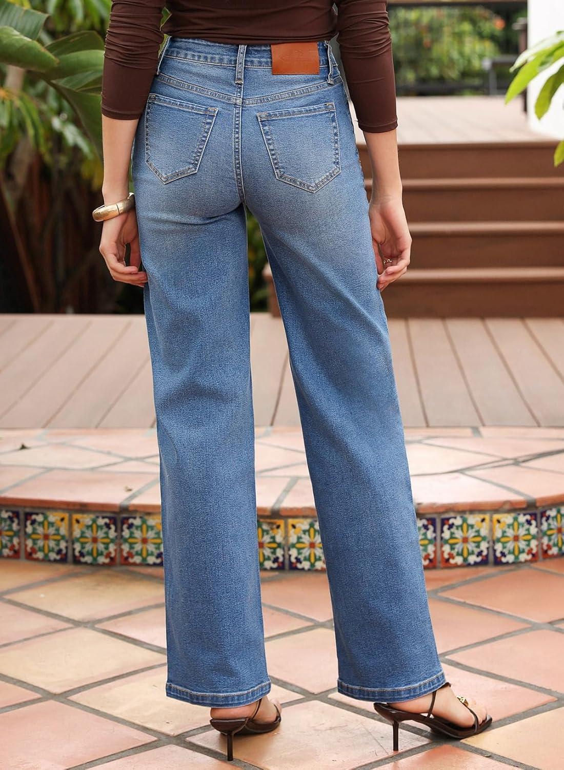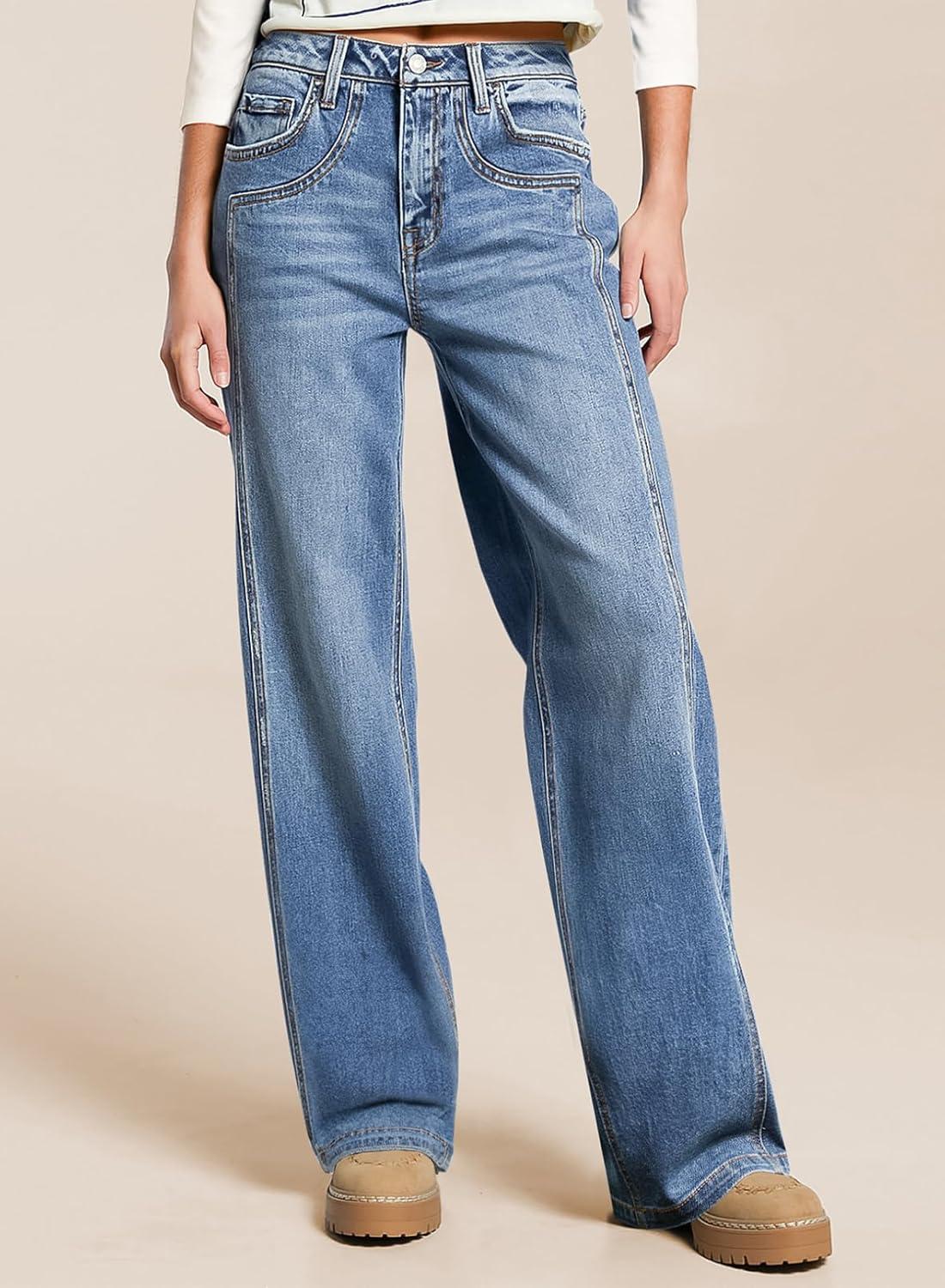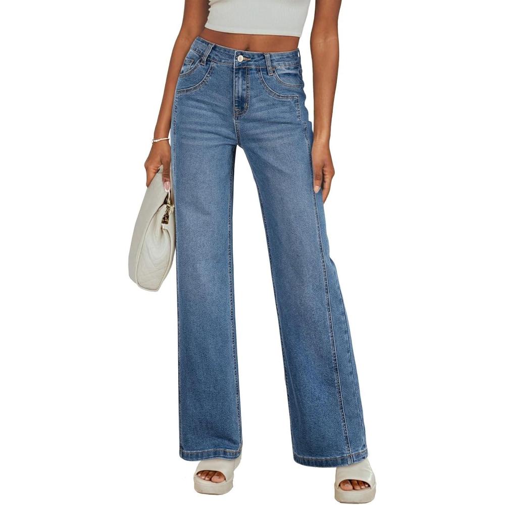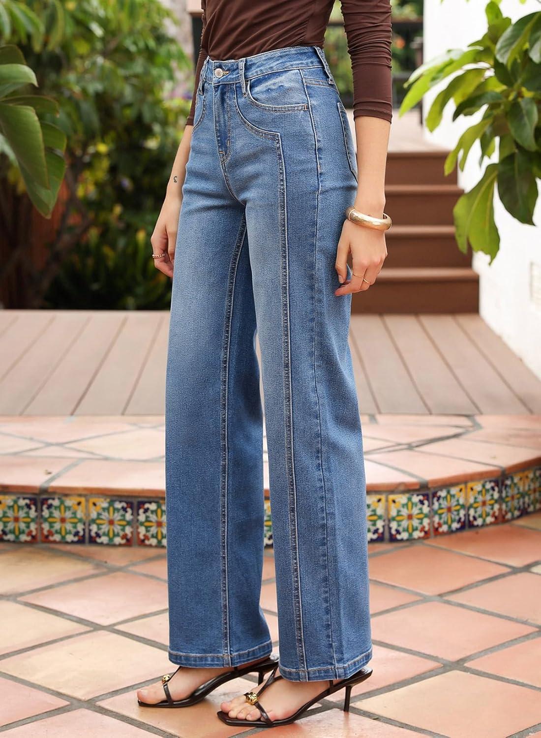 Sidefeel Women’s Wide Leg Jeans High Waisted Stretchy Jeans Straight Leg Trendy Patchwork Loose Fit Denim Pants(Iceland Blue)