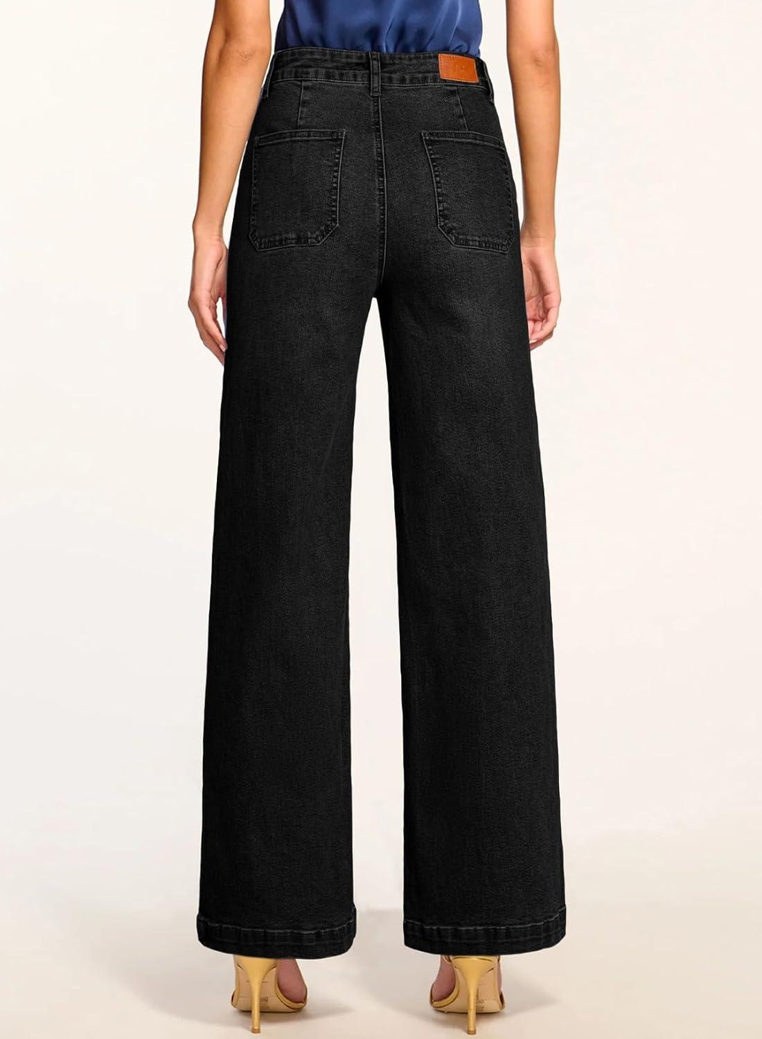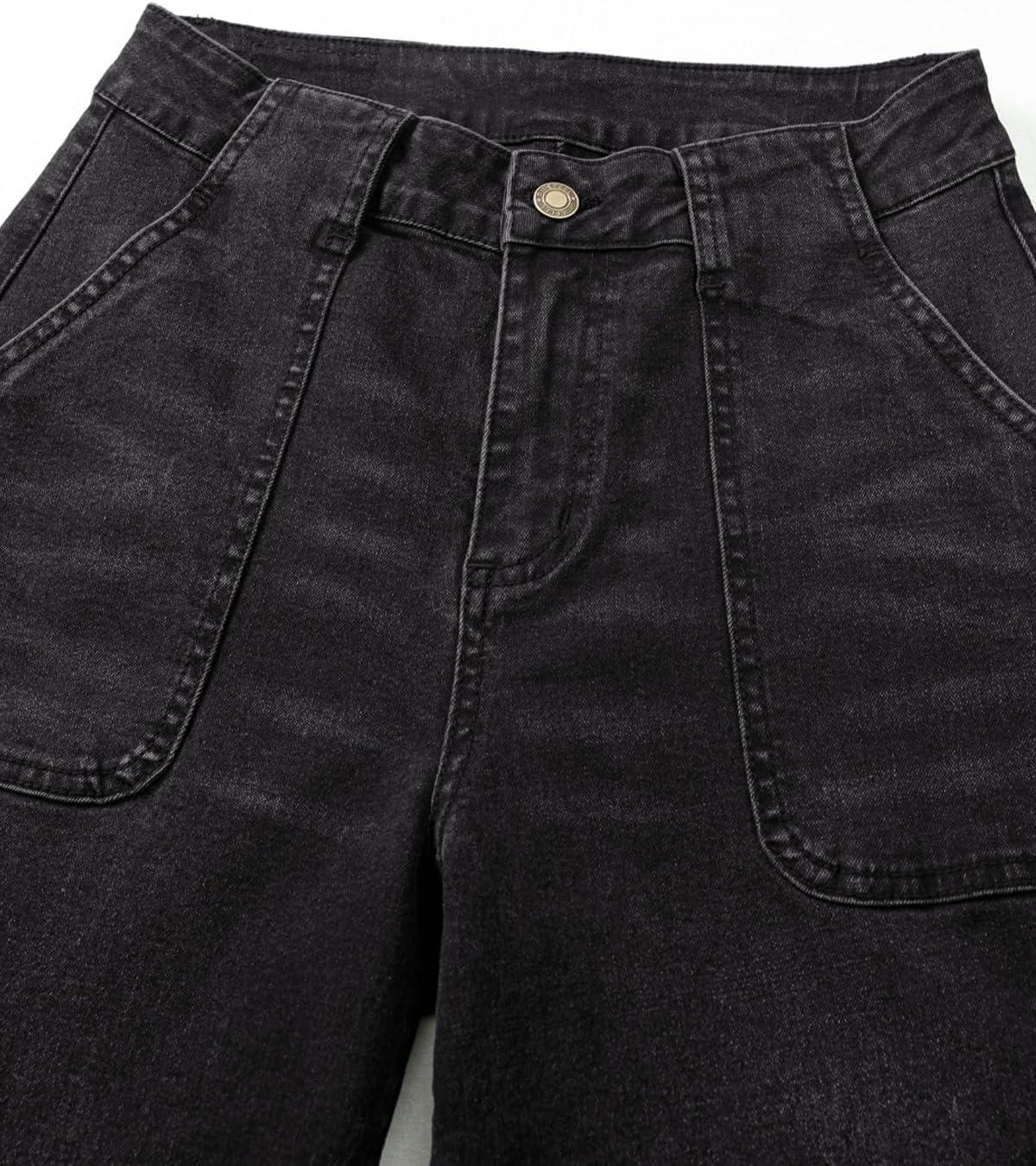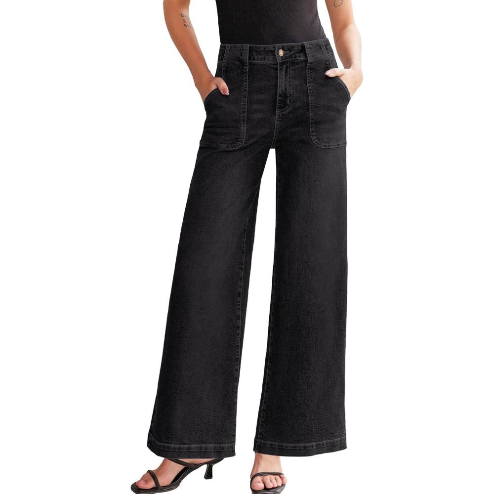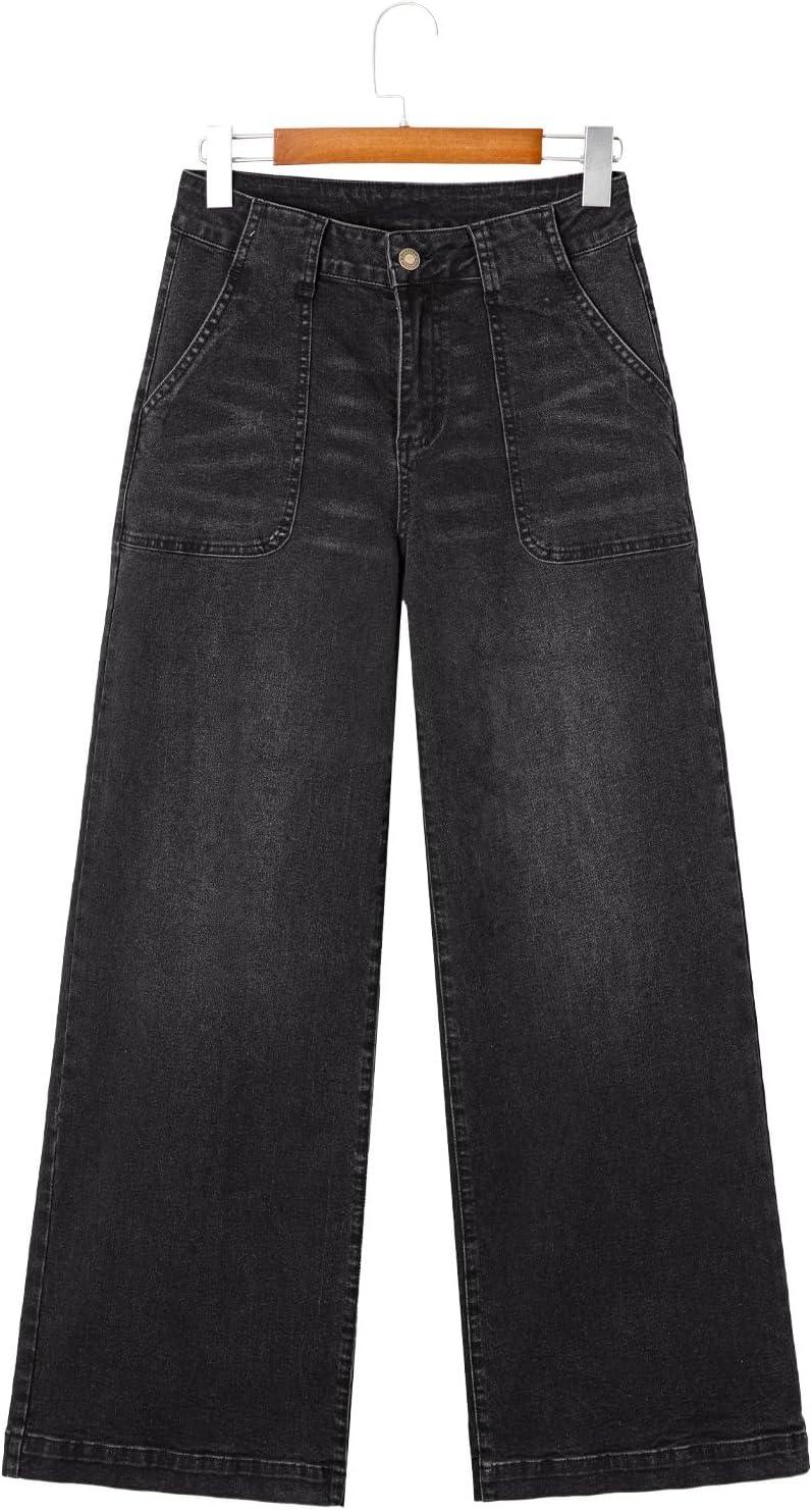 Sidefeel Womens Wide Leg Jeans High Waisted Stretchy Straight Leg Baggy Denim Pants with Pockets(Black)
