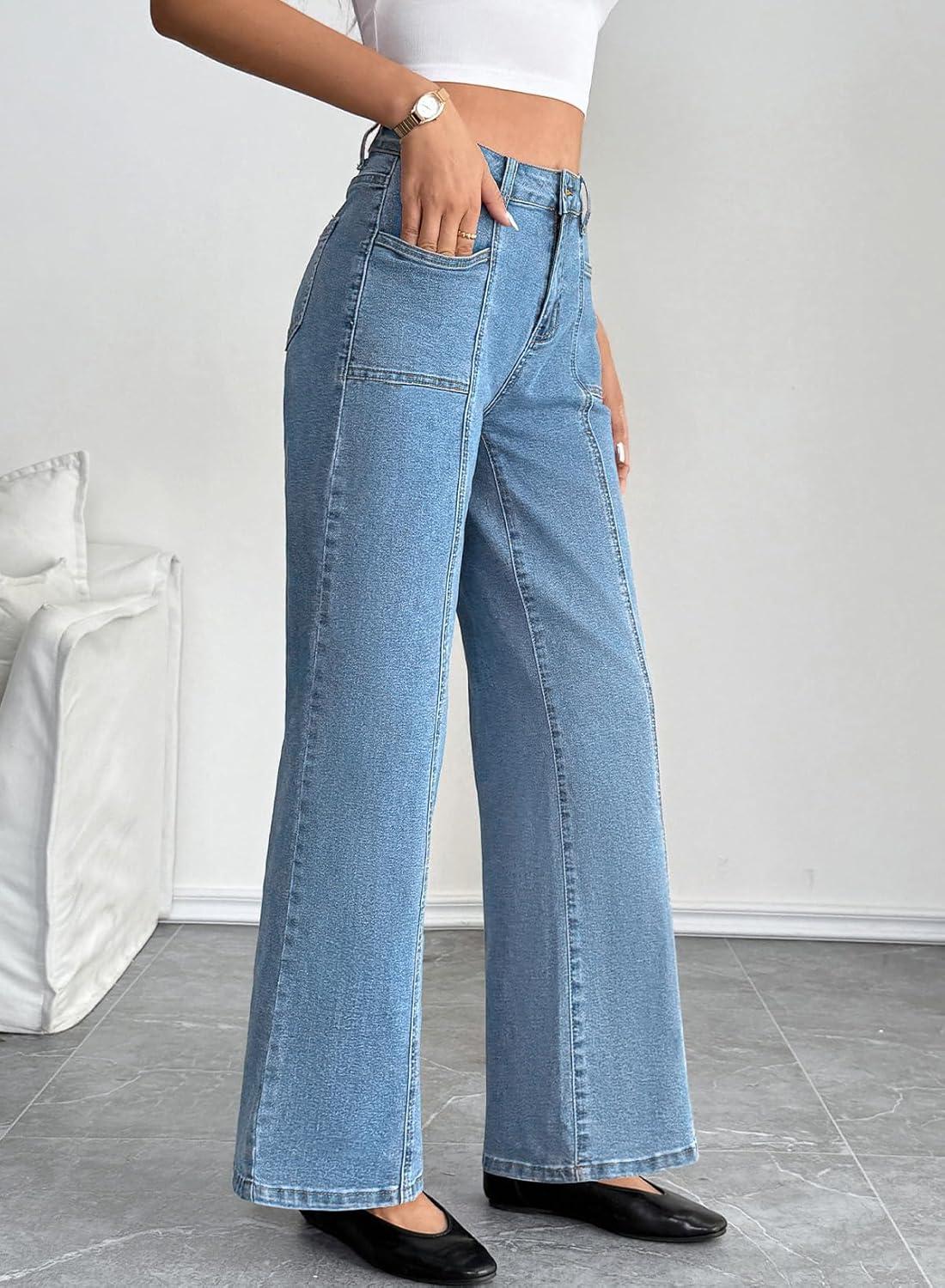 Sidefeel Womens Wide Leg Jeans High Waisted Stretchy Straight Leg Baggy Denim Pants(Light Blue)