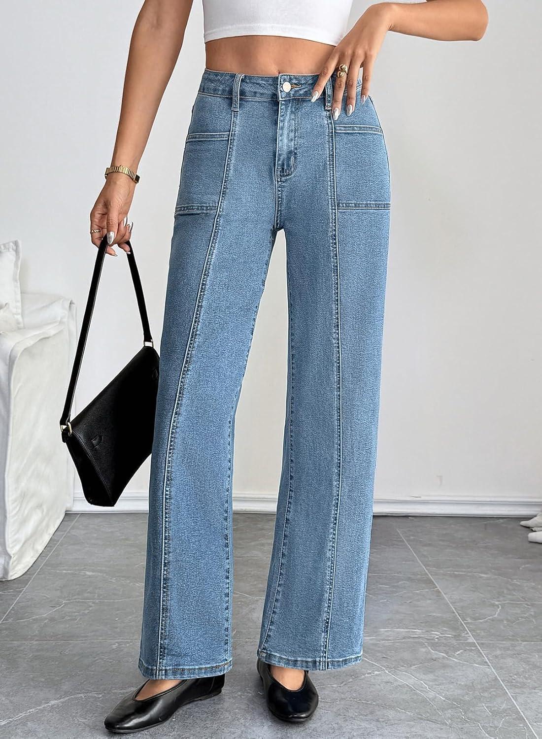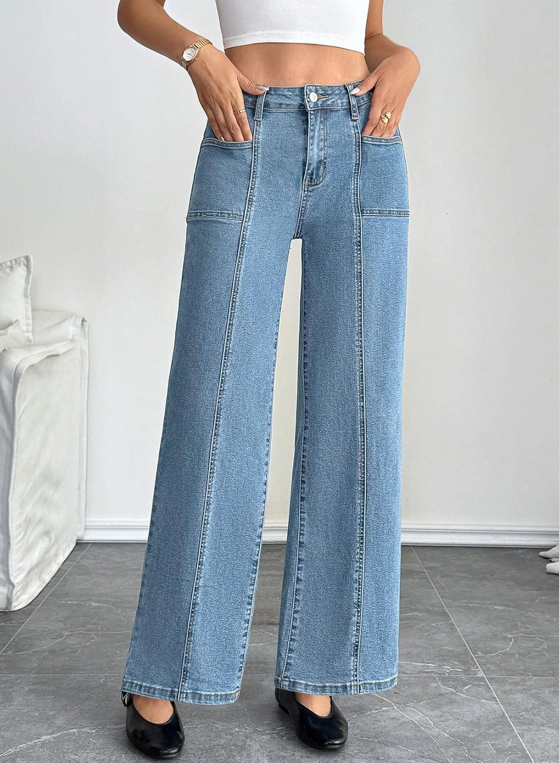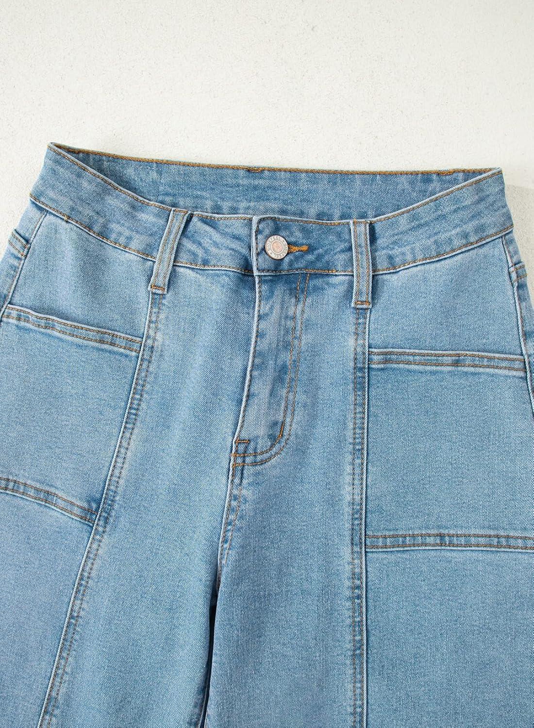 imageSidefeel Womens Wide Leg Jeans High Waisted Stretchy Straight Leg Baggy Denim PantsLight Blue