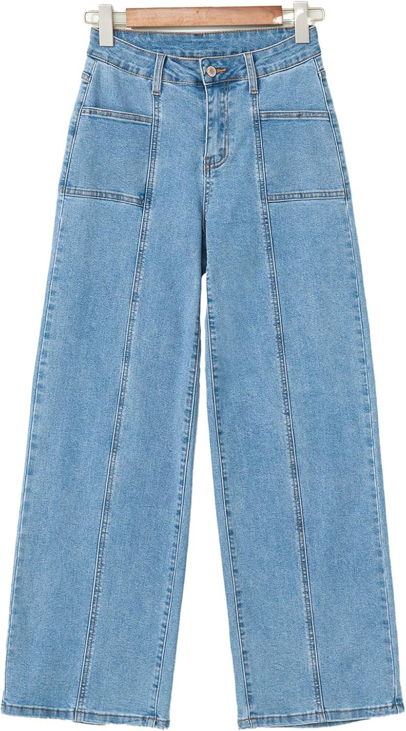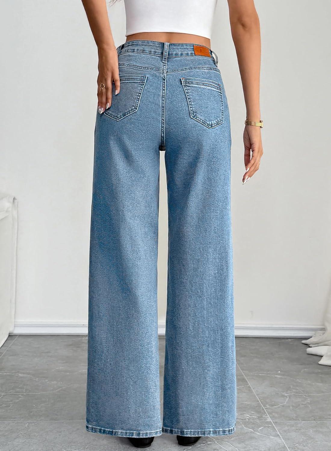 Sidefeel Womens Wide Leg Jeans High Waisted Stretchy Straight Leg Baggy Denim Pants(Iceland Blue)