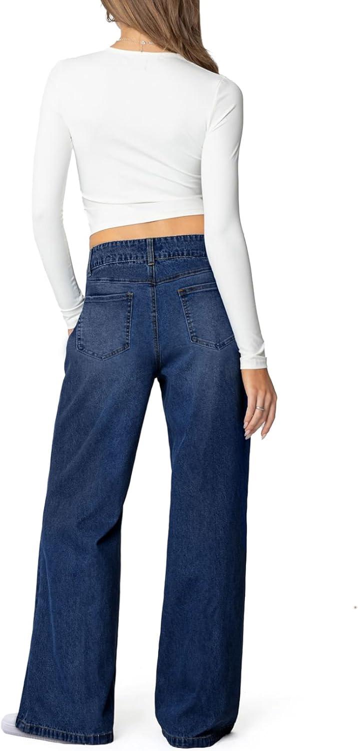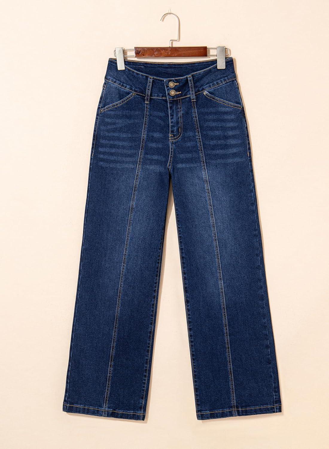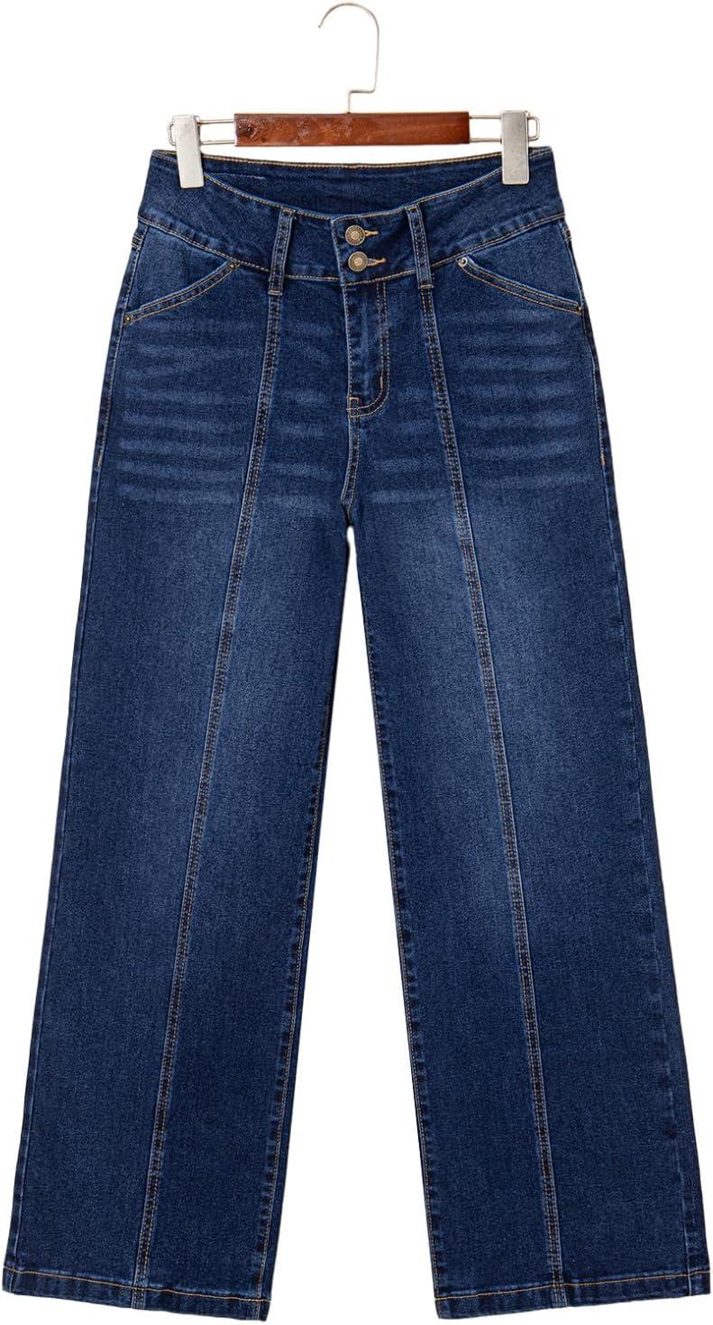 Sidefeel Women’s Wide Leg Jeans High Waisted Stretchy Straight Leg Jeans Trendy Seamed Front Loose Denim Pants(Blue)